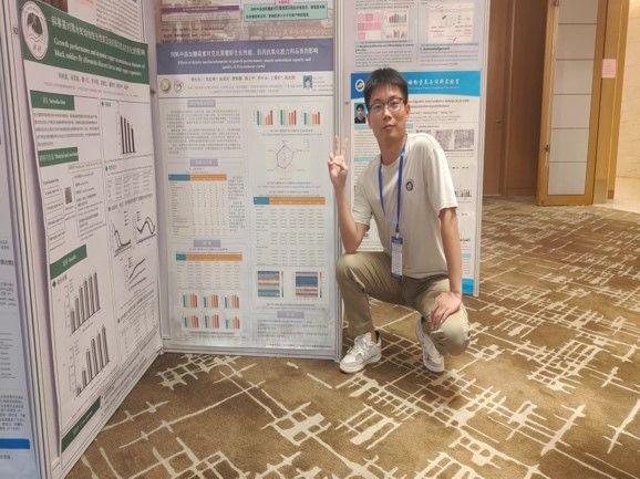 张武肖、胡长东和李敖同学在大会上分别展出题为《玉屏风散对克氏原螯虾生长、消化酶和抗氧化能力的影响》、《饲料中添加糖萜素对克氏原螯虾生长性能、肌肉抗氧化能力和品质的影响》和《不同粒径开口饵料对克氏原螯虾生长性能与营养组成的影响》的三个墙报,其中张武肖老师指导李敖制作的墙报荣获本届世华会“优秀墙报奖”。闭幕式上,田红艳副教授作为代表对“营养需求与生理代谢”版块墙报进行点评。