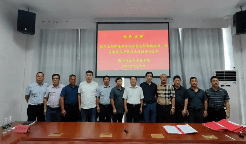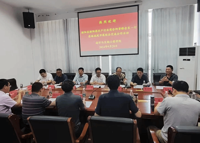 9月28日,来自中国蟹苗之乡的射阳县射阳港水产行业商会何孝锋会长、陈瑜党支部书记等一行到我校海生学院调研交流。海生学院院长彭斌、海洋技术系主任吕富和相关教师、盐城市养殖协会会长邵鹏、盐城市水产科学研究院办公室主任朱爱民等参加调研交流会。交流会由副院长齐志涛主持。