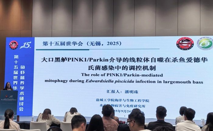 会上,研究所4名教师和2名研究生入选口头报告,分别从不同方面展示了本实验室的近期研究成果,刘飞教授作了题为《水蛭肠道异嗜糖气单胞菌促进水蛭生长研究》的报告;张武肖博士报告了《饲料不同维生素 E 水平对克氏原螯虾生长性能、肌肉品质和肠道微生物稳态的影响》;潘明珠博士探讨了《大口黑鲈 PINK1/Parkin介导的线粒体自噬促进杀鱼爱德华氏菌胞内增殖的机制研究》;夏斯蕾博士分享了《不同光色对克氏原螯虾甲壳色素沉积、多组织抗氧化能力及类胡萝卜素代谢相关基因表达的影响》。研究生艾卓卓同学报告了《饲料不同脂肪水平对克氏原螯虾幼虾生长、肌肉品质及肠道健康的影响》;研究生杜友海同学汇报了《温度与微塑料联合暴露对克氏原螯虾复合毒性效应研究》。这些报告内容翔实,吸引了现场众多学者。