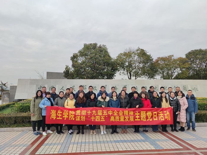 为缅怀革命先烈,锤炼坚强党性,12月5日,海生学院党总支组织全体教师党员赴泰州杨根思烈士陵园、新四军黄桥战役纪念馆和中国人民解放军海军诞生地纪念馆开展“贯彻十九届五中全会精神,谋划‘十四五’高质量发展”主题党日活动。