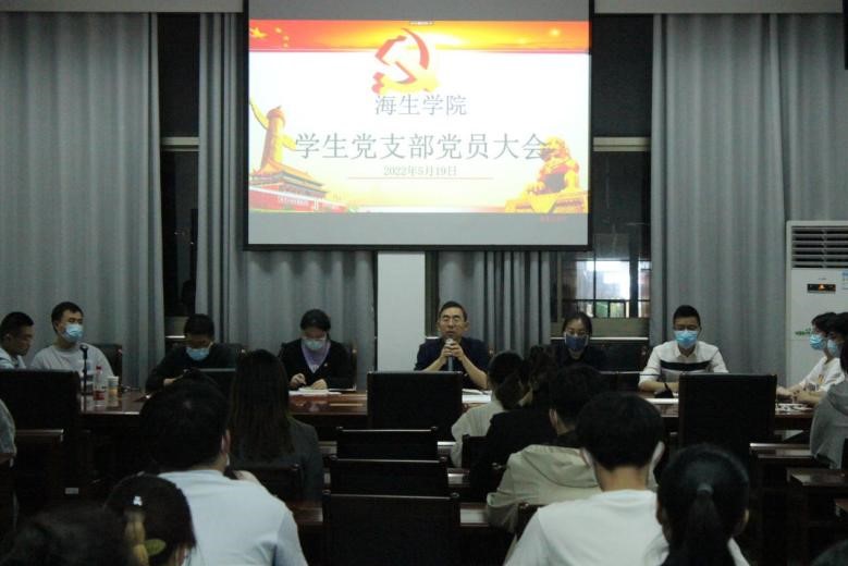 5月19日晚,海生学院在会议室召开了党员支部大会,讨论接收预备党员。本次会议采取线上线下结合的方式,学院党总支书记高留才、总支副书记毕蕾、学工办副主任郭海松,支部全体师生正式党员、预备党员出席。由学生党支部书记王珂主持本次会议。