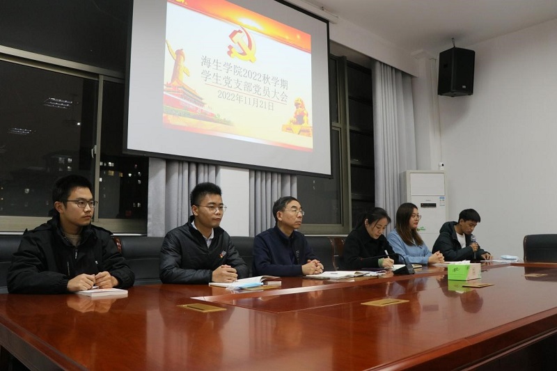 11月21日晚,海生学院在学院会议室召开学生党支部大会,讨论接收沈梦妍、曾锡烽等10位同志成为预备党员。学院党总支书记高留才、副书记毕蕾,学工办副主任郭海松、团委副书记、学生党支部书记王珂,支部全体师生正式党员、预备党员出席。会议由新生辅导员霍福松主持。