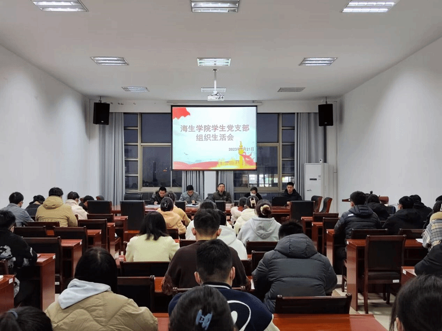 3月21日晚6点,海生学院学生党支部在大会议室召开组织生活会,对全体党员开展民主评议。本次会议有学院党支部书记高留才、党支部副书记毕蕾,学工办副主任郭海松、专职辅导员唐铭坤以及全体学生党员参加。本次会议由霍福松老师主持。