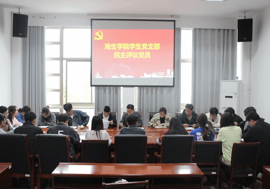 4月15日,海生学院学生党支部在海生学院大会议室召开党员民主评议会,学院党支部书记高留才,副书记毕蕾,学工办副主任郭海松,专职辅导员唐铭坤及学生党员参加。会议由霍福松主持。