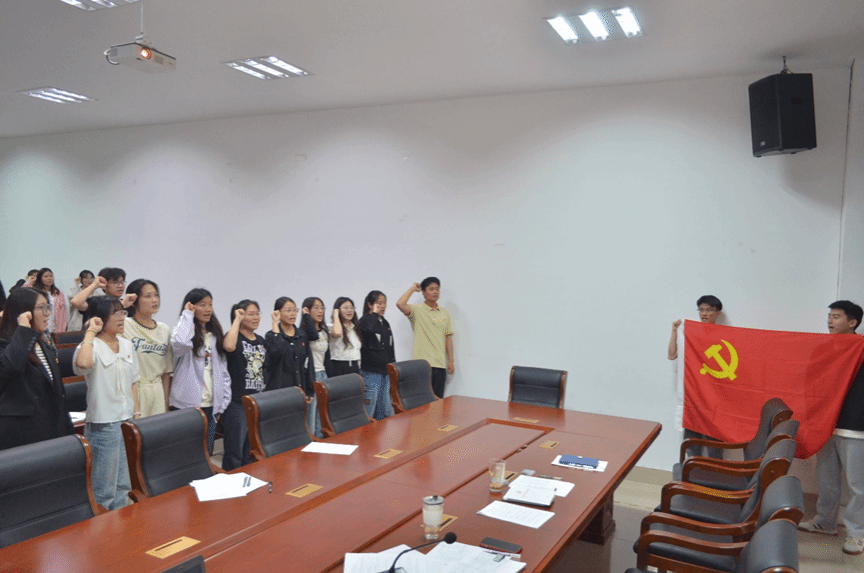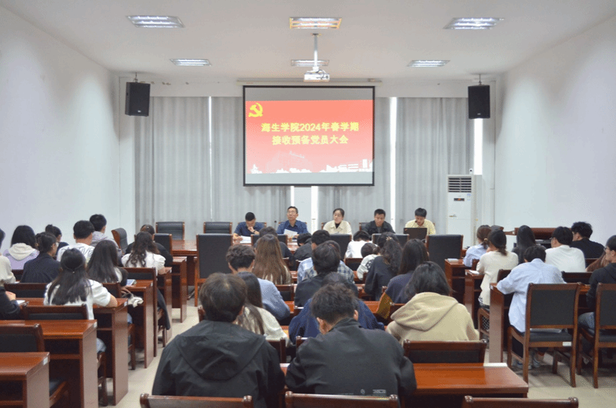 2024年5月30日下午,海生学院在大会议室召开接收预备党员大会。本次会议党总支书记高留才、党总支副书记毕蕾、学工办副主任郭海松、辅导员唐铭坤以及学生党支部全体成员参加,会议由学生党支部书记霍福松主持。