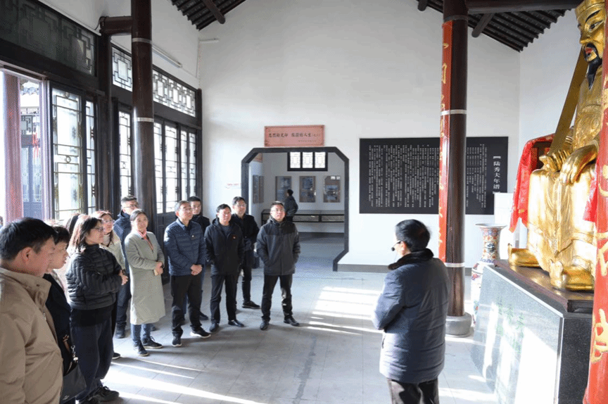 在陆秀夫纪念馆党员们集体观瞻一代名臣年幼读书处、碑林和忠烈堂,认真聆听了以死殉国的忠烈之歌和“丹心报国、坚贞不屈、情系桑梓、清正廉洁”的勤廉事迹,感叹他临危受命、壮烈殉节的不朽精神。