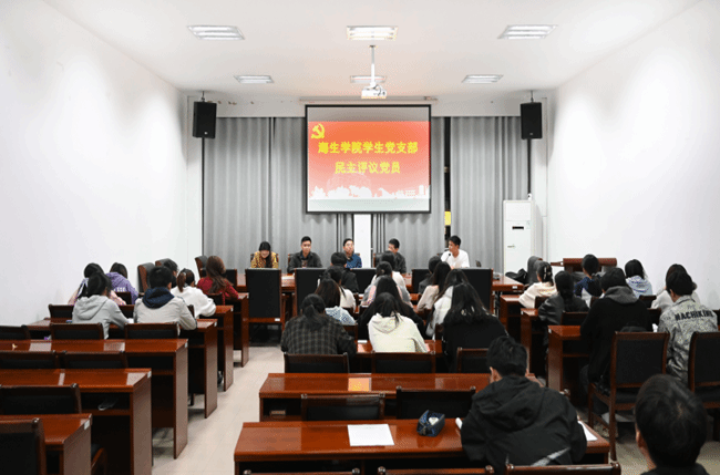 3月24日,海生学院学生党在大会议室开展民主评议党员大会。海生学院学生党支部全体党员、预备党员参加,会议由学生党支部书记霍福松主持。