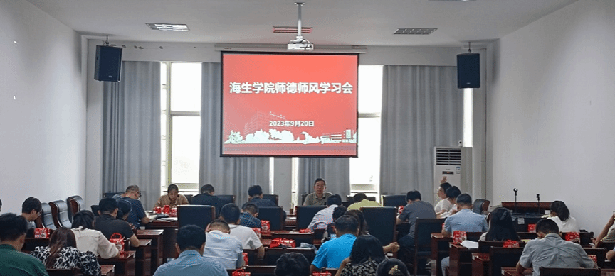 9月20日下午,海生学院在学院会议室开展师德师风学习会,集中学习习近平总书记在全国优秀教师座谈会上重要讲话精神。海生学院党总支书记高留才主持,全体教师参加。