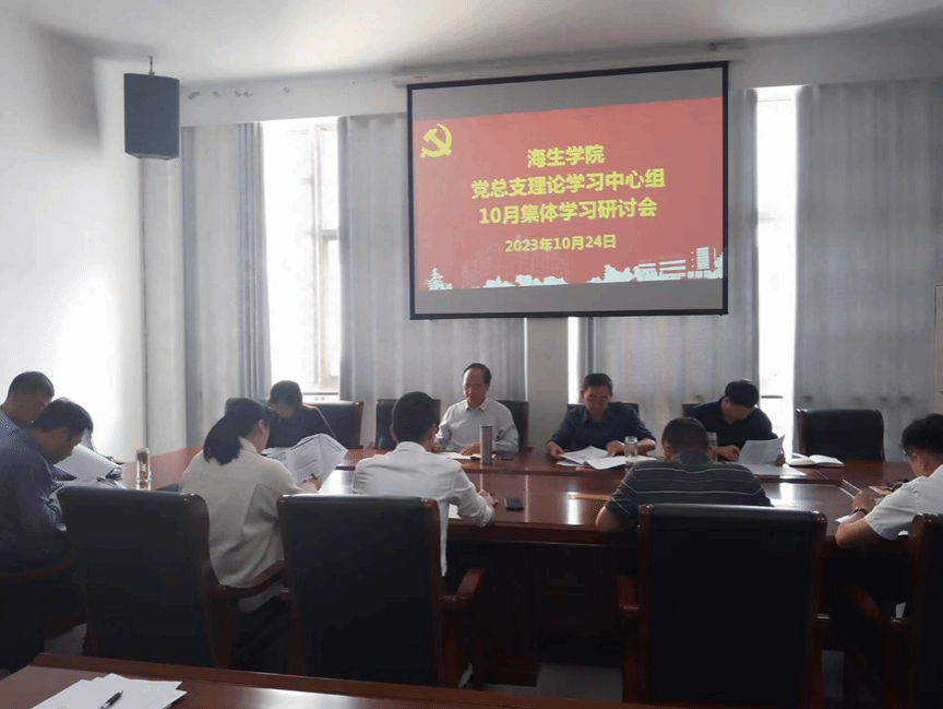 10月24日下午,海生学院党总支理论学习中心组开展集中学习研讨,专题学习习近平法治思想和习近平总书记对宣传思想文化工作作出重要指示精神。学院党总支书记高留才领学,校党委第三巡学旁听组组长钱长锋、成员束安娣到会指导,学院党总支理论学习中心组成员参加。