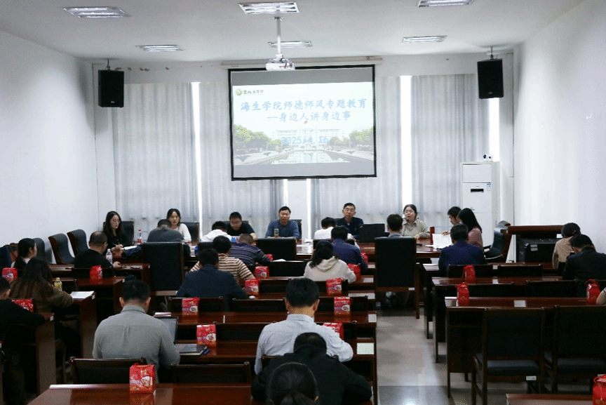 为扎实推进新时代教师队伍师德师风建设,进一步提升教师队伍思想政治素养和职业道德水平。4月16日下午,海生学院在会议室组织师德师风学习教育,举办“身边人讲身边事”活动,邀请张明明副教授和兼职辅导员夏斯蕾分享考研工作和从教多年的感受和体会。会议由党总支书记高留才主持,院长彭斌和全体教职工参加。