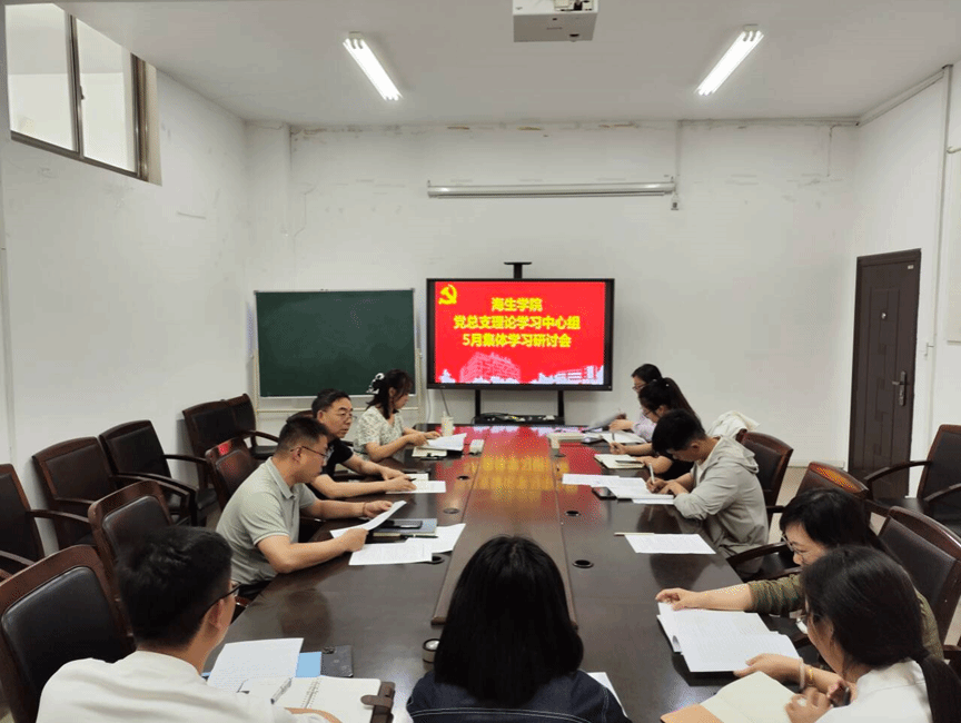 5月19日,海生学院党总支开展2025年春学期第三次中心组理论学习,学院副院长齐志涛领学,党总支理论学习中心组成员参加。