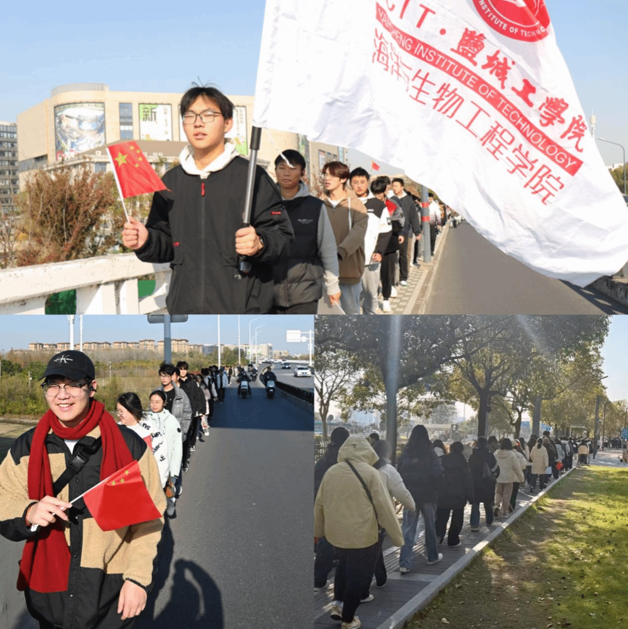 主题团课活动开展前,海生学院300余名大一新生集中在北区图书馆门口,列队规整。各班班助带领同学们进行拉练,徒步前往新四军纪念馆,行走途中,队伍整齐有序,展现出海生学子昂扬的精神风貌。