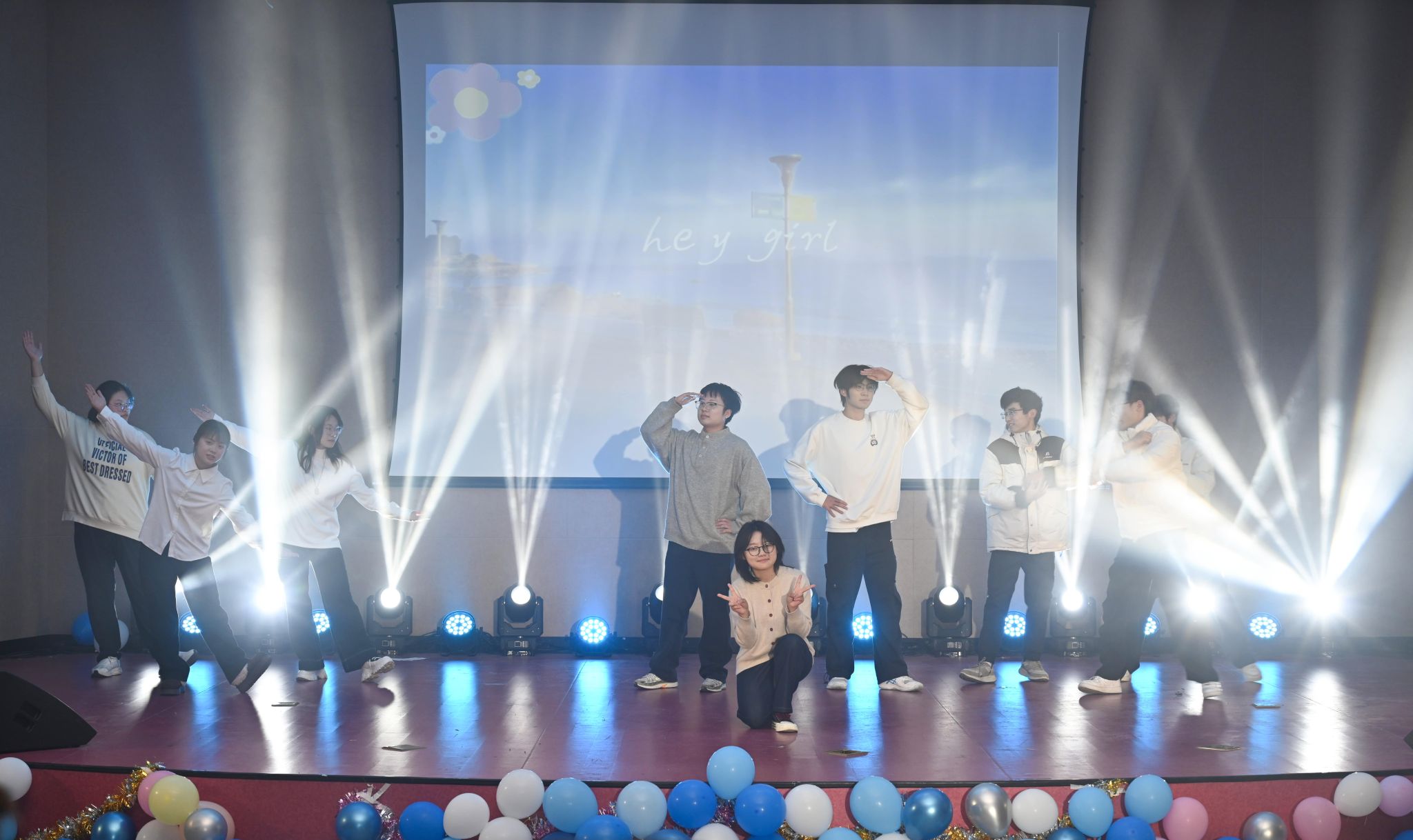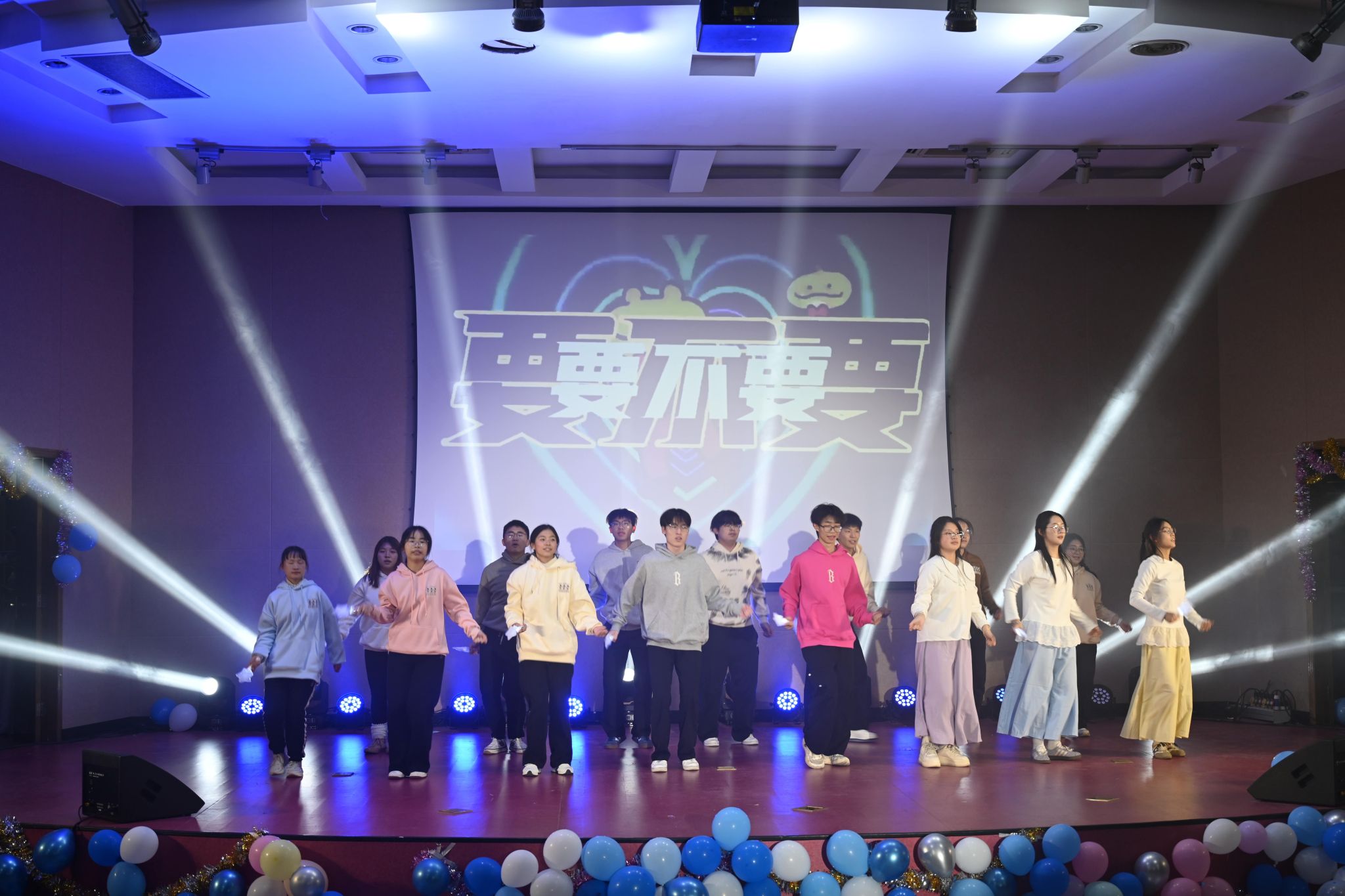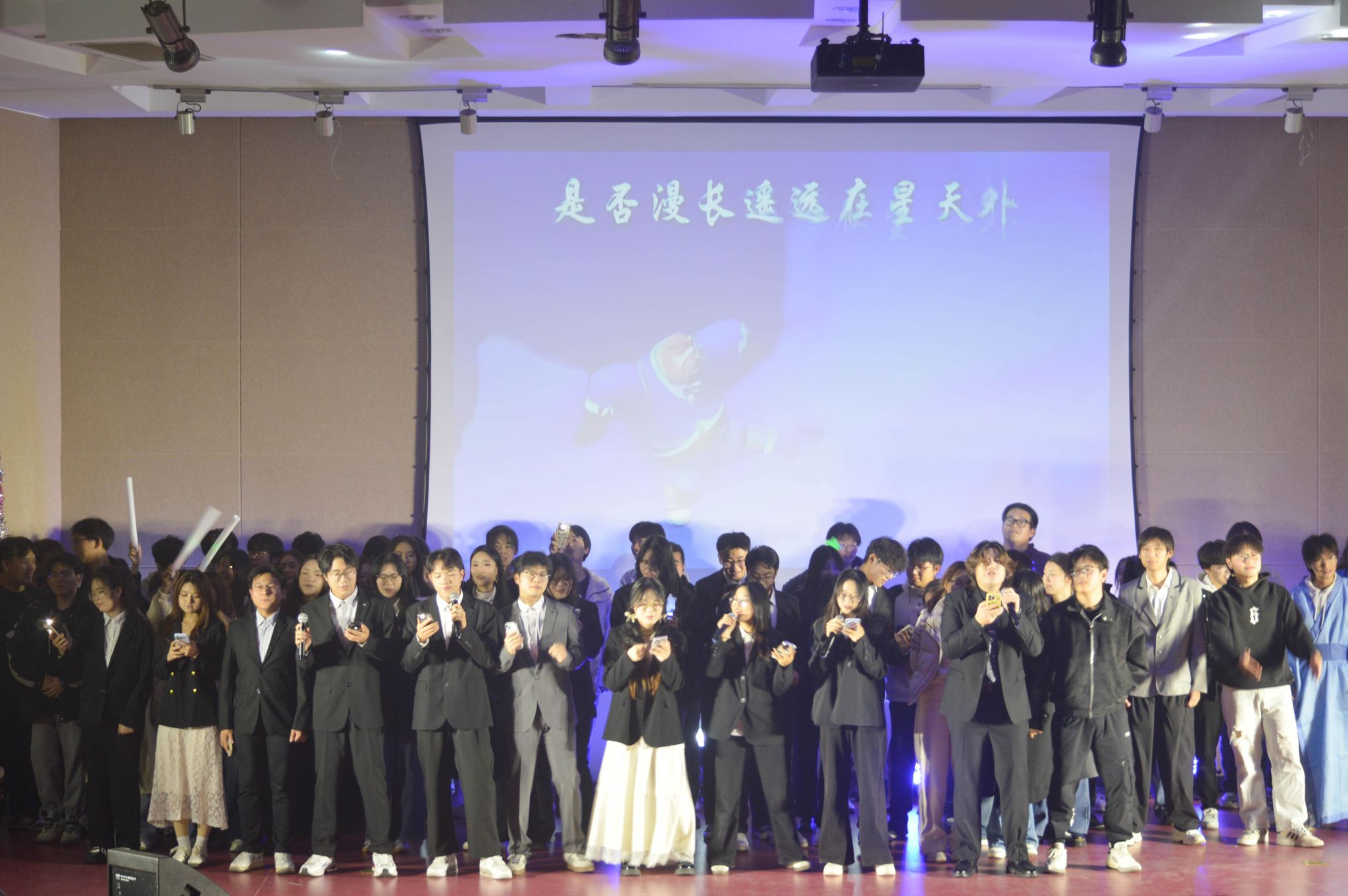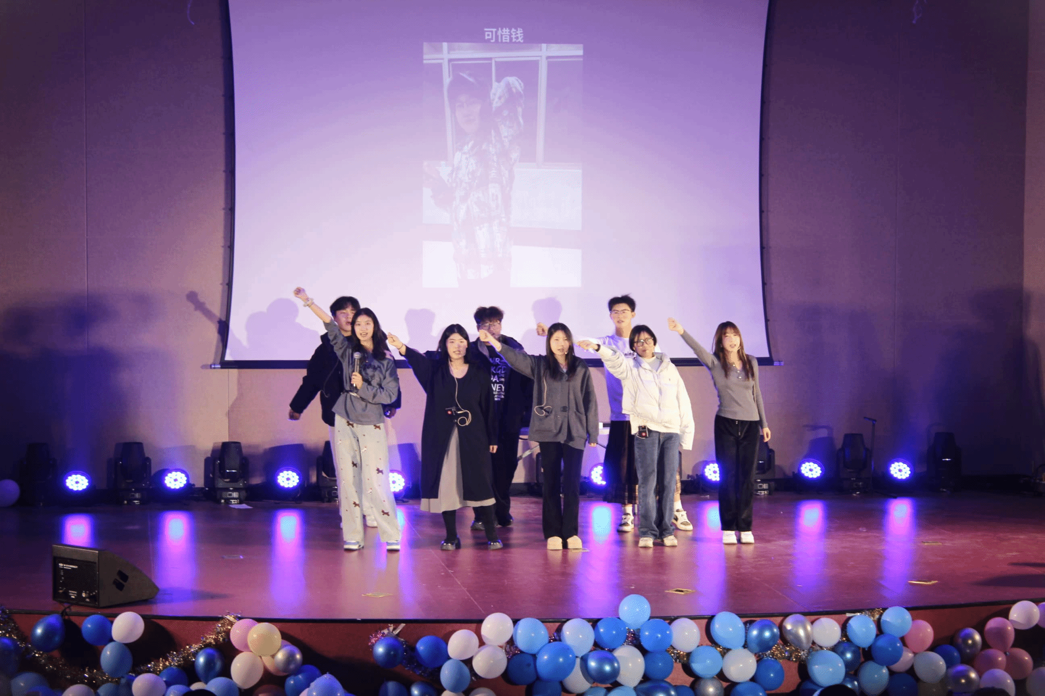 晚会在JDC舞社活力四射的表演《Famous》中拉开帷幕,瞬间点燃全场气氛。整场晚会节目形式多样、内容丰富多彩,生动展现了海生学子多才多艺、朝气蓬勃的青春风貌。同学们自编自演的节目《下课十分钟》《离考试结束还有十五分钟》《白雪公主与七个大高个》紧密贴近学习生活,充满创意与温情。改编小品《万松书院》《甄嬛传之谁动了我的奖学金》将经典剧情融入校园场景,以幽默方式展现大学生活;歌曲《脂灯笼》巧妙融合专业知识和艺术表达,生动有趣;防诈骗情景剧《“诈”裂青春,“聪”明前行》结合现实案例,提升同学们的网络安全意识;从《极昼也有梦》《日不落》的明媚炽热,到《卡拉OK》《Yes,werock》《风与城与达芬奇的混沌共振》的自由欢腾,再到《未发送的心动漫游》《我的未来式》《舞动青春》的昂扬奔赴,活力四射的同学们用整齐划一的动作展现出青春的激扬,与台下的观众共赴逐梦之约。师生合作环节更是温情满满,两首经典粤语歌曲《真的爱你》联唱引起全场共鸣,教师代表献唱的海生版《有点甜》,诠释了校园生活的纯粹与美好,寄托了对同学们的深深期许。晚会还穿插了互动环节,“猜歌大比拼”吸引现场同学踊跃参与,欢声笑语不断。在温馨的寄语视频和幕后花絮播放后,朗诵《闪耀吧,青春的火光》和学生干部代表合唱《我乘着风飞过来》,为整场晚会画上圆满句号。