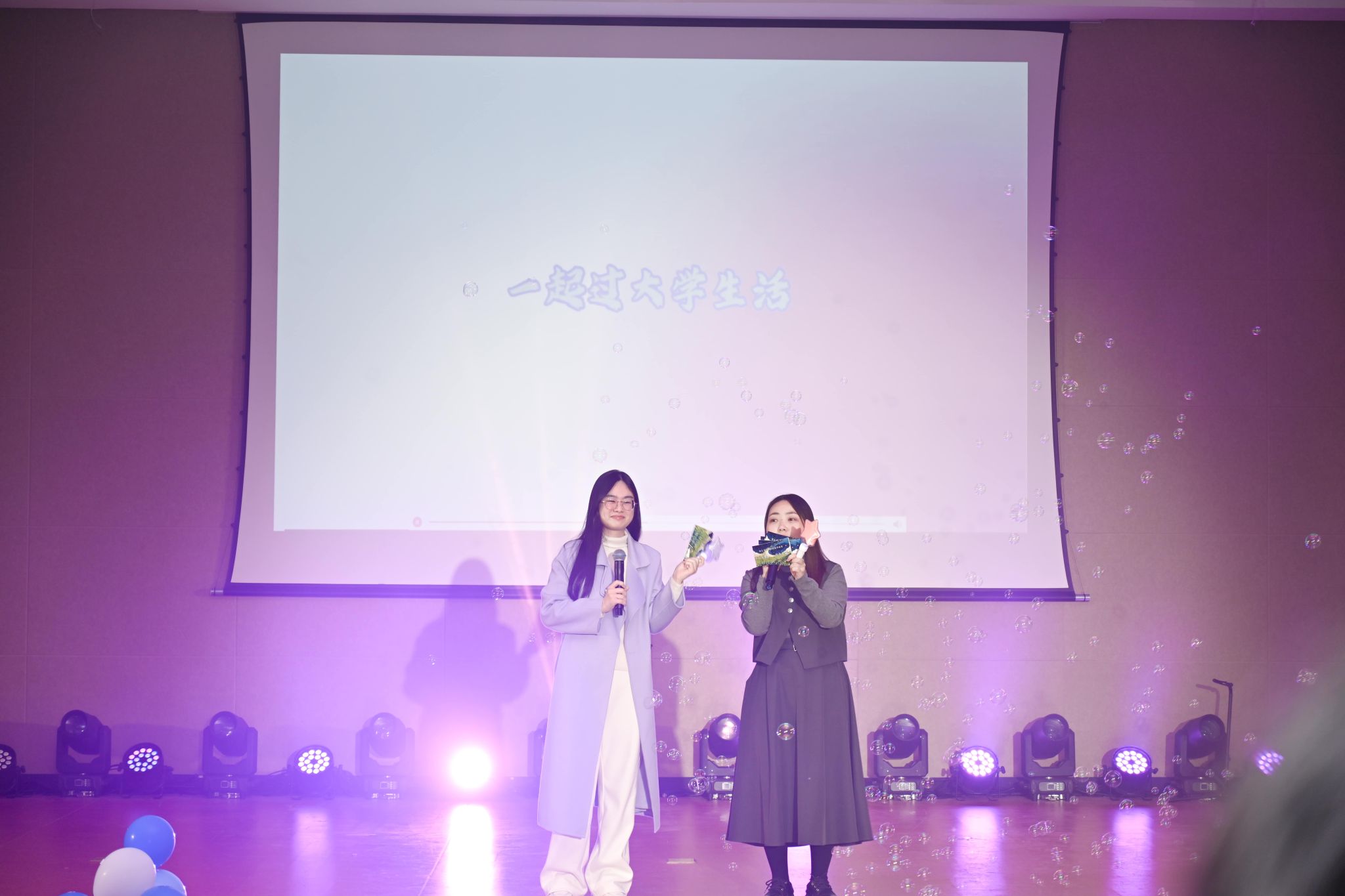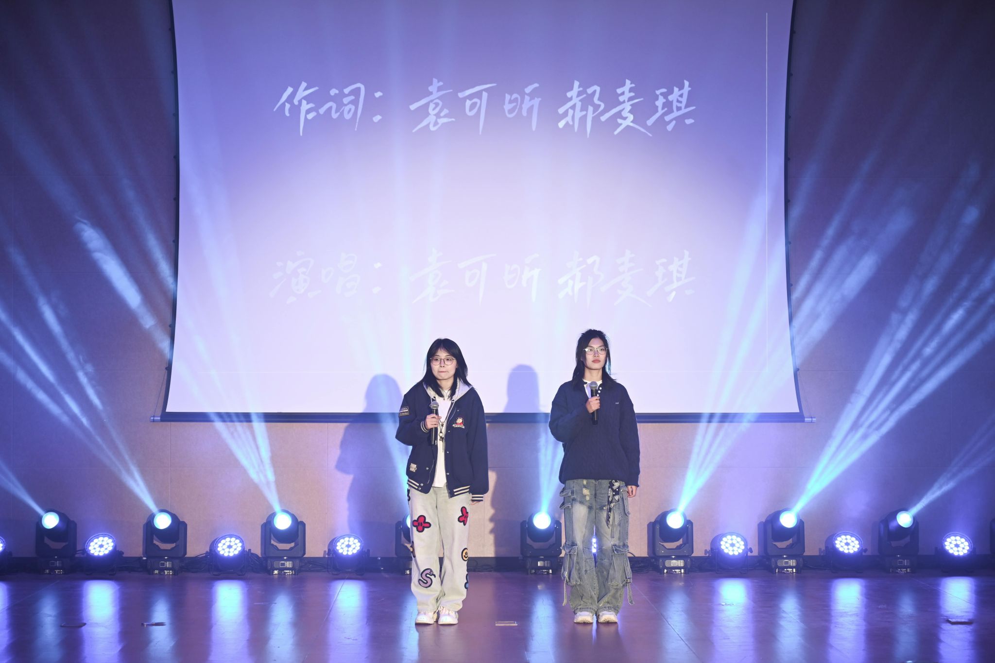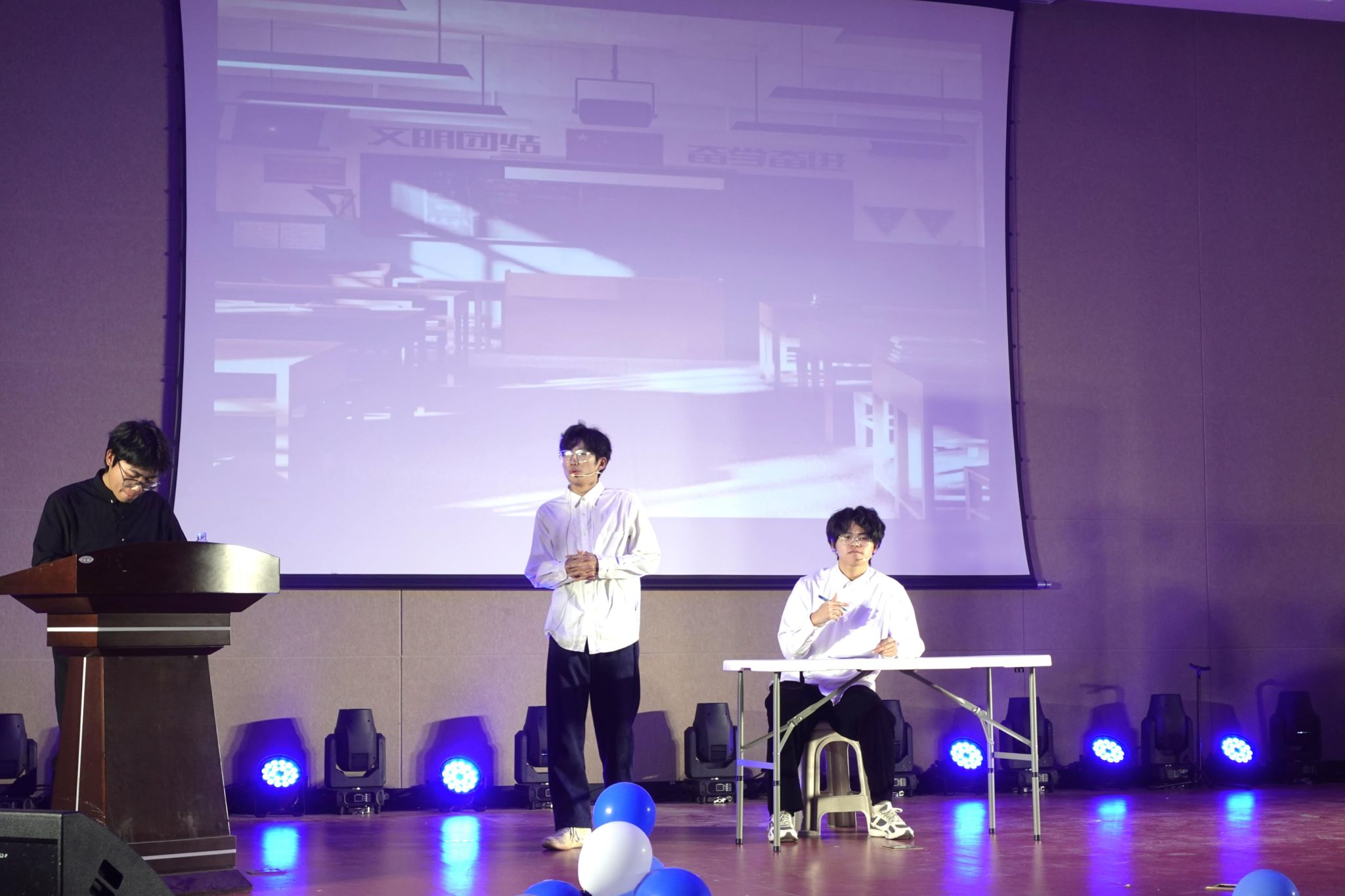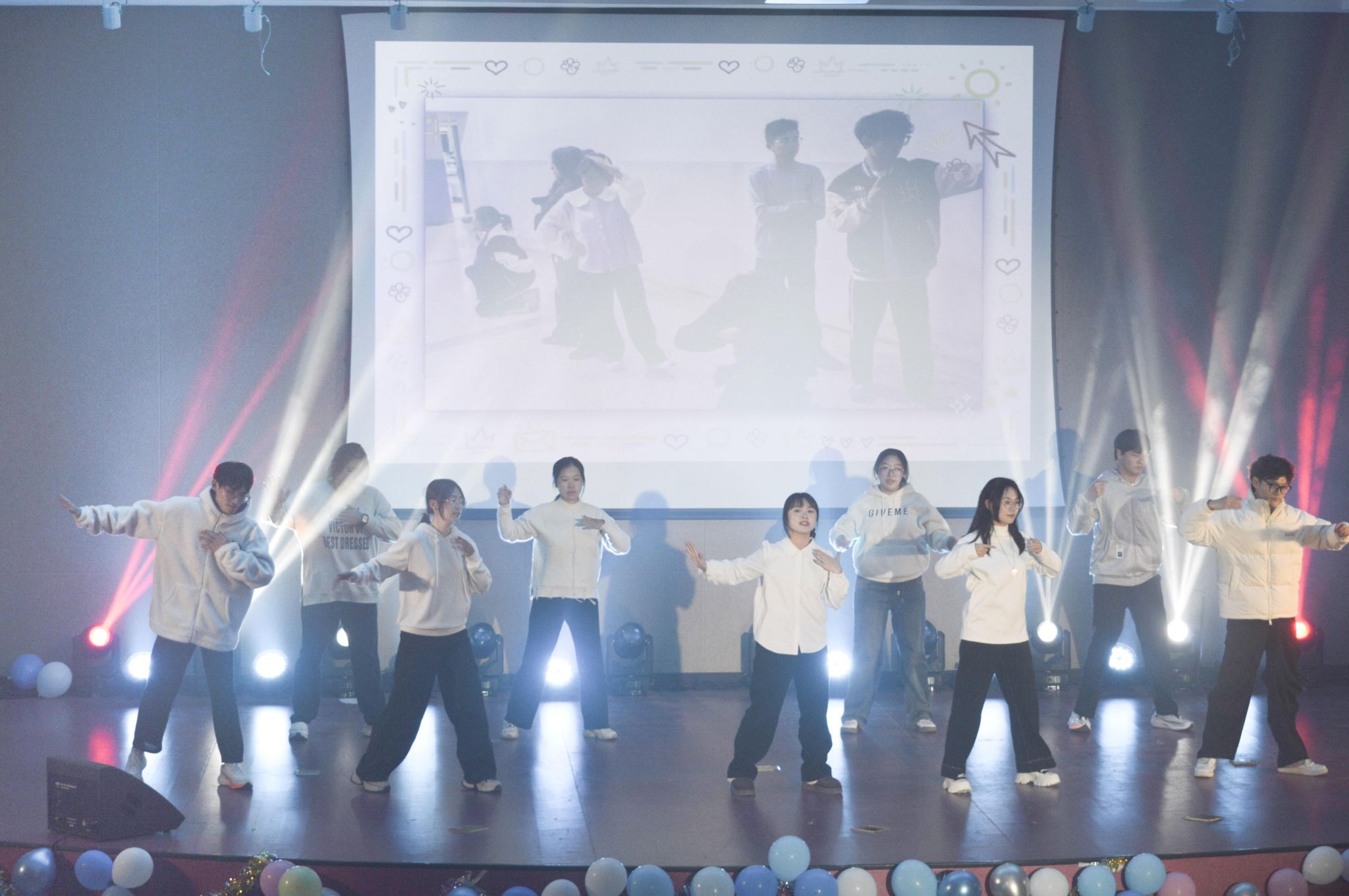 晚会在JDC舞社活力四射的表演《Famous》中拉开帷幕,瞬间点燃全场气氛。整场晚会节目形式多样、内容丰富多彩,生动展现了海生学子多才多艺、朝气蓬勃的青春风貌。同学们自编自演的节目《下课十分钟》《离考试结束还有十五分钟》《白雪公主与七个大高个》紧密贴近学习生活,充满创意与温情。改编小品《万松书院》《甄嬛传之谁动了我的奖学金》将经典剧情融入校园场景,以幽默方式展现大学生活;歌曲《脂灯笼》巧妙融合专业知识和艺术表达,生动有趣;防诈骗情景剧《“诈”裂青春,“聪”明前行》结合现实案例,提升同学们的网络安全意识;从《极昼也有梦》《日不落》的明媚炽热,到《卡拉OK》《Yes,werock》《风与城与达芬奇的混沌共振》的自由欢腾,再到《未发送的心动漫游》《我的未来式》《舞动青春》的昂扬奔赴,活力四射的同学们用整齐划一的动作展现出青春的激扬,与台下的观众共赴逐梦之约。师生合作环节更是温情满满,两首经典粤语歌曲《真的爱你》联唱引起全场共鸣,教师代表献唱的海生版《有点甜》,诠释了校园生活的纯粹与美好,寄托了对同学们的深深期许。晚会还穿插了互动环节,“猜歌大比拼”吸引现场同学踊跃参与,欢声笑语不断。在温馨的寄语视频和幕后花絮播放后,朗诵《闪耀吧,青春的火光》和学生干部代表合唱《我乘着风飞过来》,为整场晚会画上圆满句号。