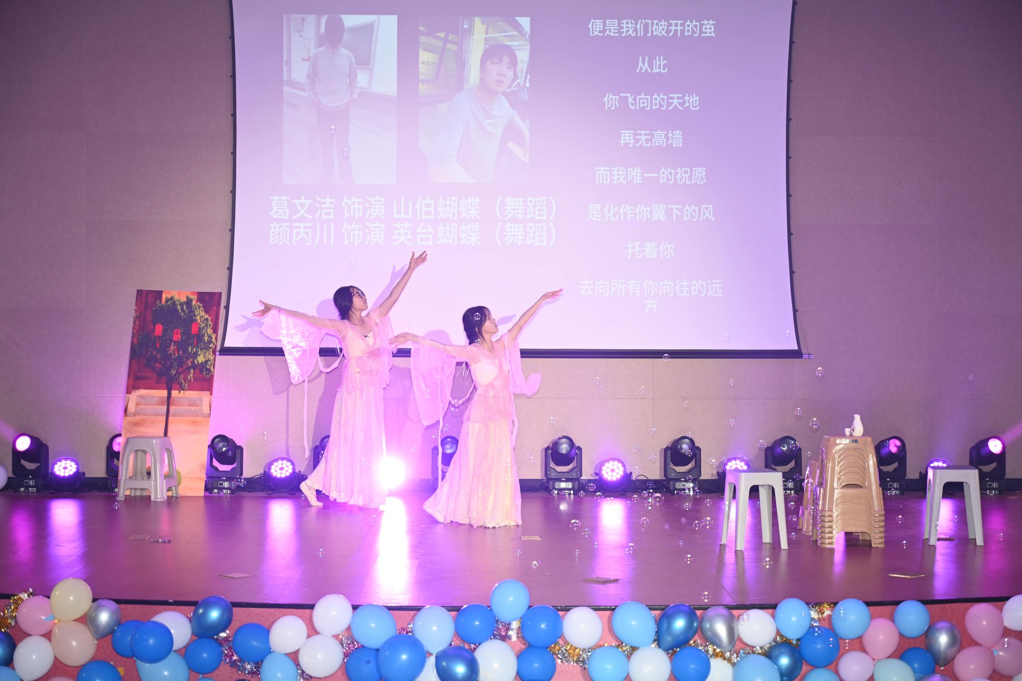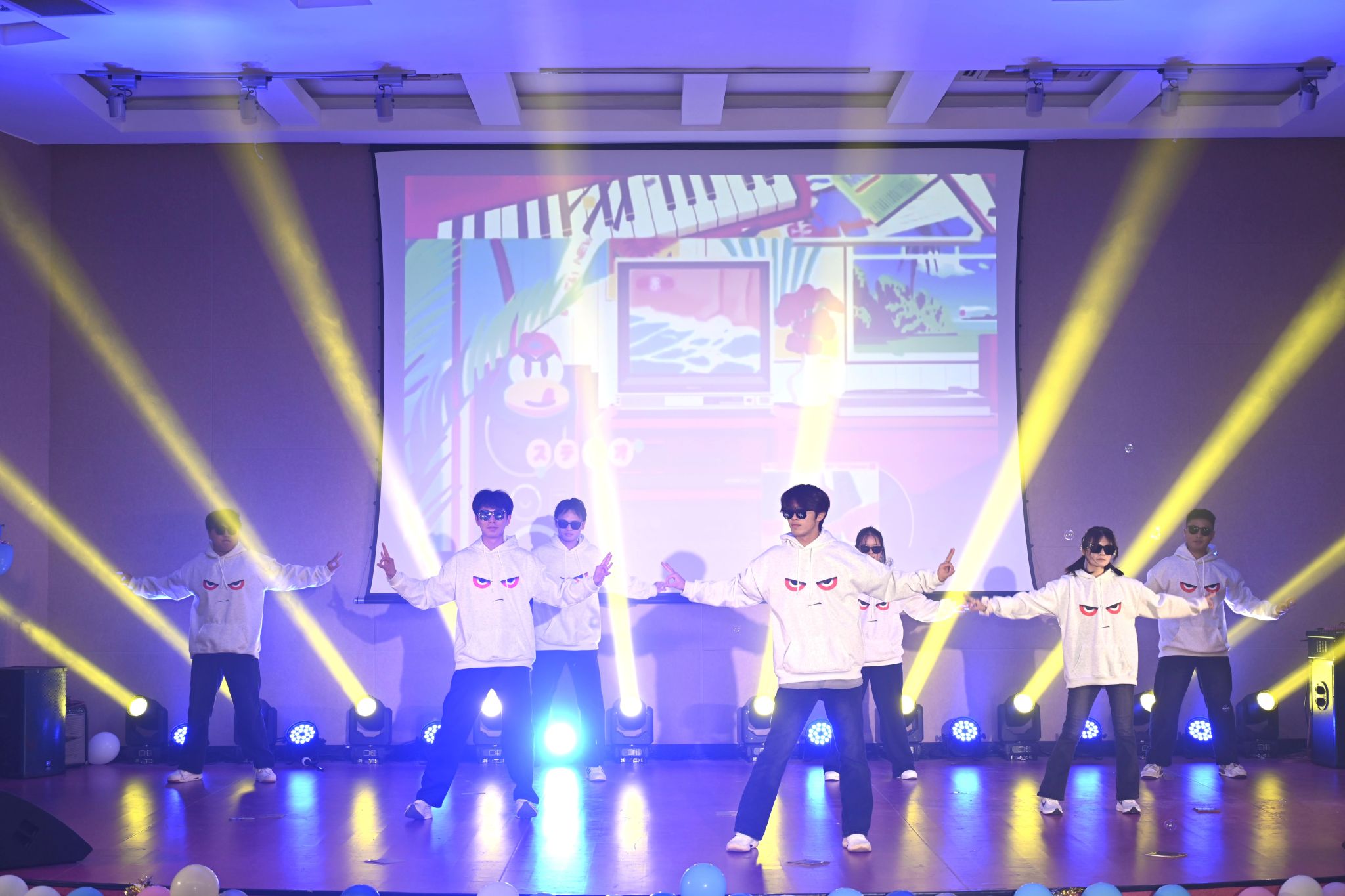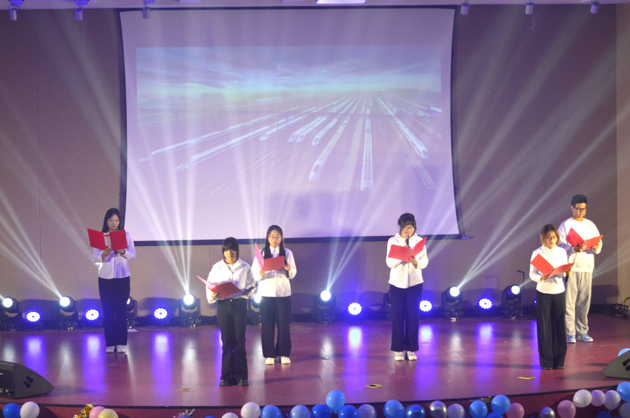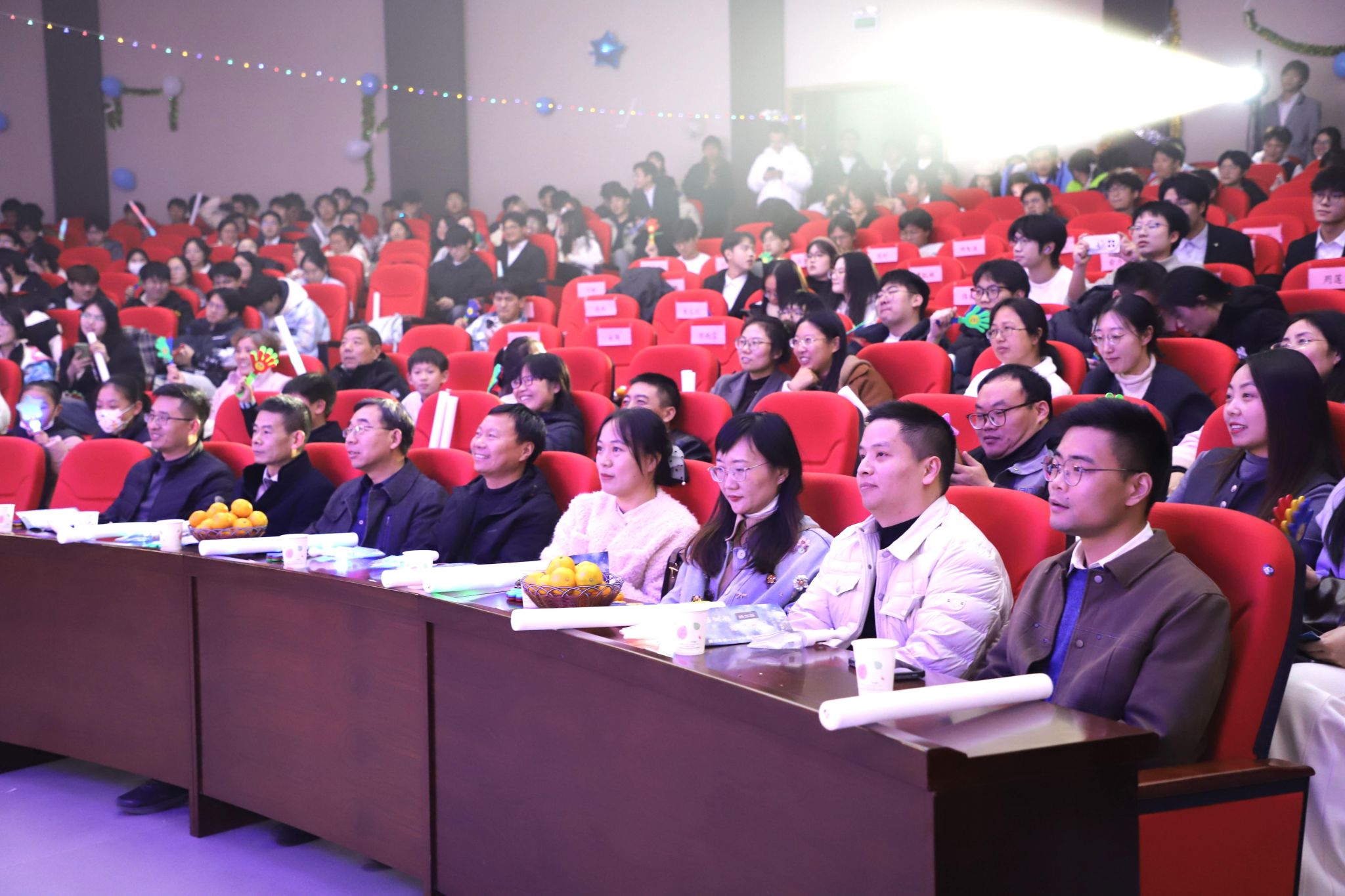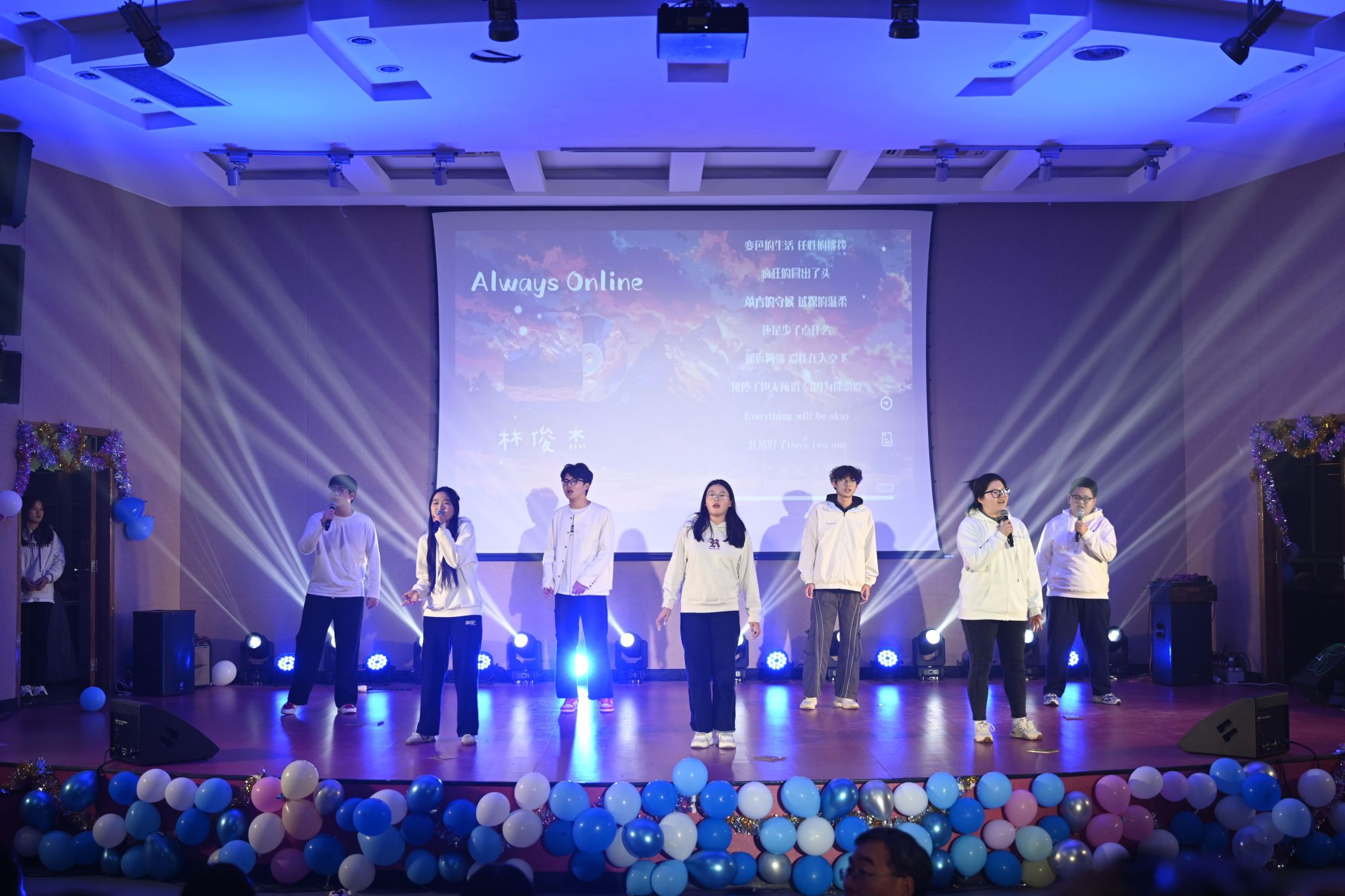 晚会在JDC舞社活力四射的表演《Famous》中拉开帷幕,瞬间点燃全场气氛。整场晚会节目形式多样、内容丰富多彩,生动展现了海生学子多才多艺、朝气蓬勃的青春风貌。同学们自编自演的节目《下课十分钟》《离考试结束还有十五分钟》《白雪公主与七个大高个》紧密贴近学习生活,充满创意与温情。改编小品《万松书院》《甄嬛传之谁动了我的奖学金》将经典剧情融入校园场景,以幽默方式展现大学生活;歌曲《脂灯笼》巧妙融合专业知识和艺术表达,生动有趣;防诈骗情景剧《“诈”裂青春,“聪”明前行》结合现实案例,提升同学们的网络安全意识;从《极昼也有梦》《日不落》的明媚炽热,到《卡拉OK》《Yes,werock》《风与城与达芬奇的混沌共振》的自由欢腾,再到《未发送的心动漫游》《我的未来式》《舞动青春》的昂扬奔赴,活力四射的同学们用整齐划一的动作展现出青春的激扬,与台下的观众共赴逐梦之约。师生合作环节更是温情满满,两首经典粤语歌曲《真的爱你》联唱引起全场共鸣,教师代表献唱的海生版《有点甜》,诠释了校园生活的纯粹与美好,寄托了对同学们的深深期许。晚会还穿插了互动环节,“猜歌大比拼”吸引现场同学踊跃参与,欢声笑语不断。在温馨的寄语视频和幕后花絮播放后,朗诵《闪耀吧,青春的火光》和学生干部代表合唱《我乘着风飞过来》,为整场晚会画上圆满句号。