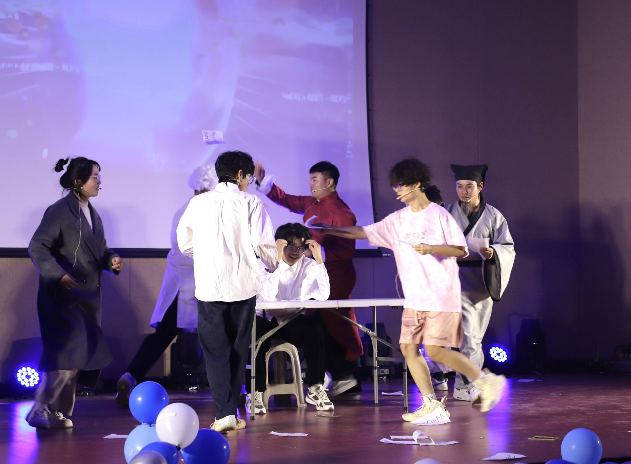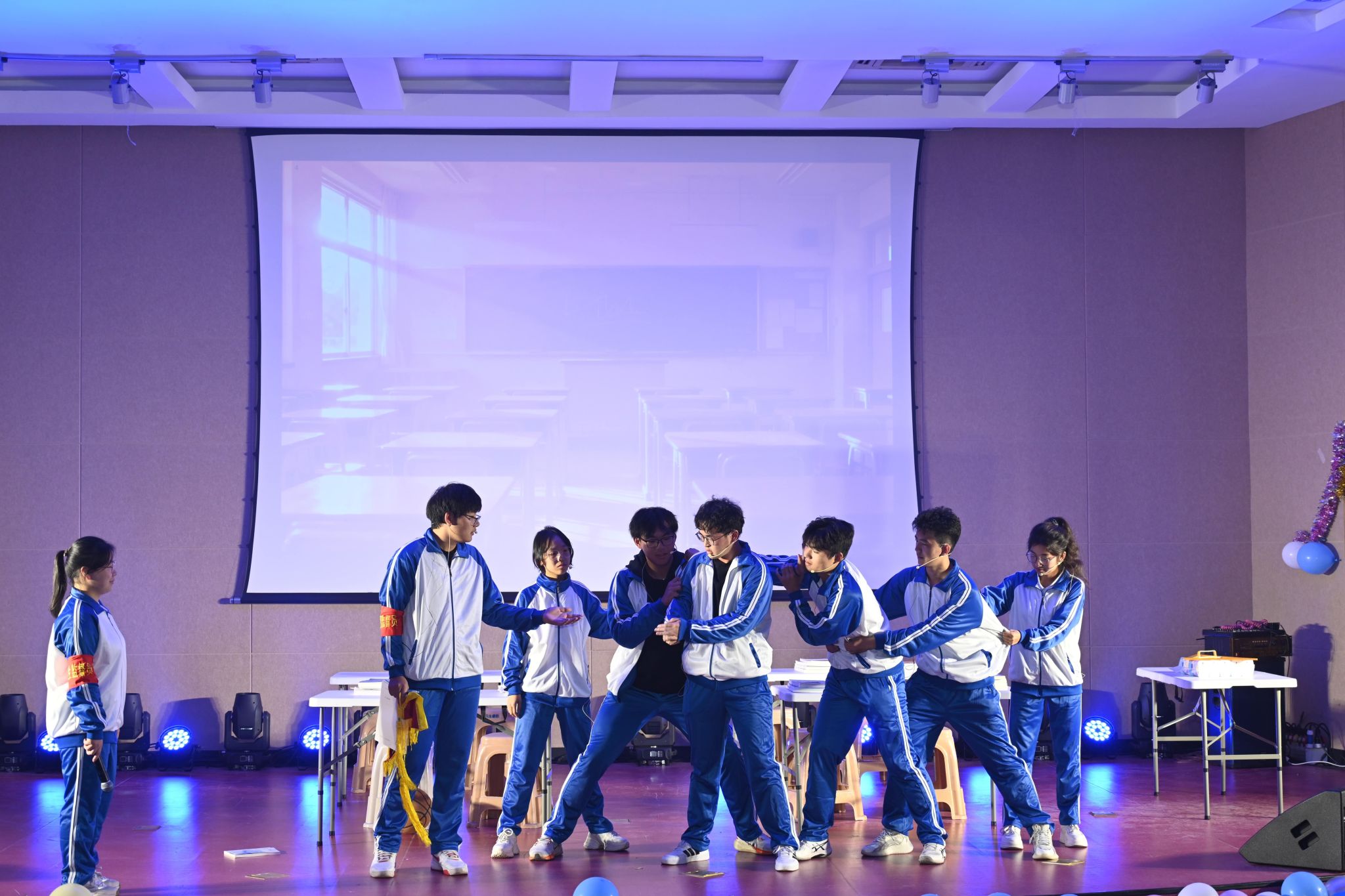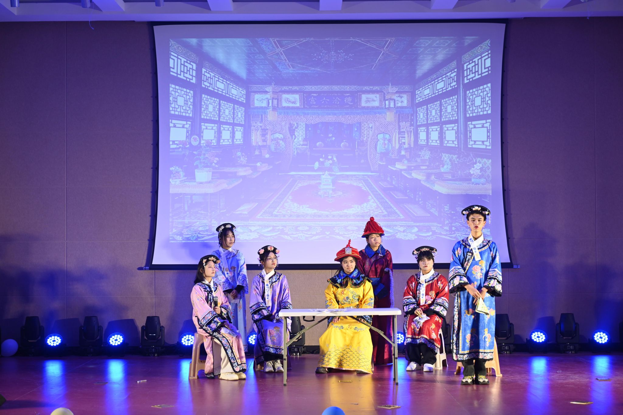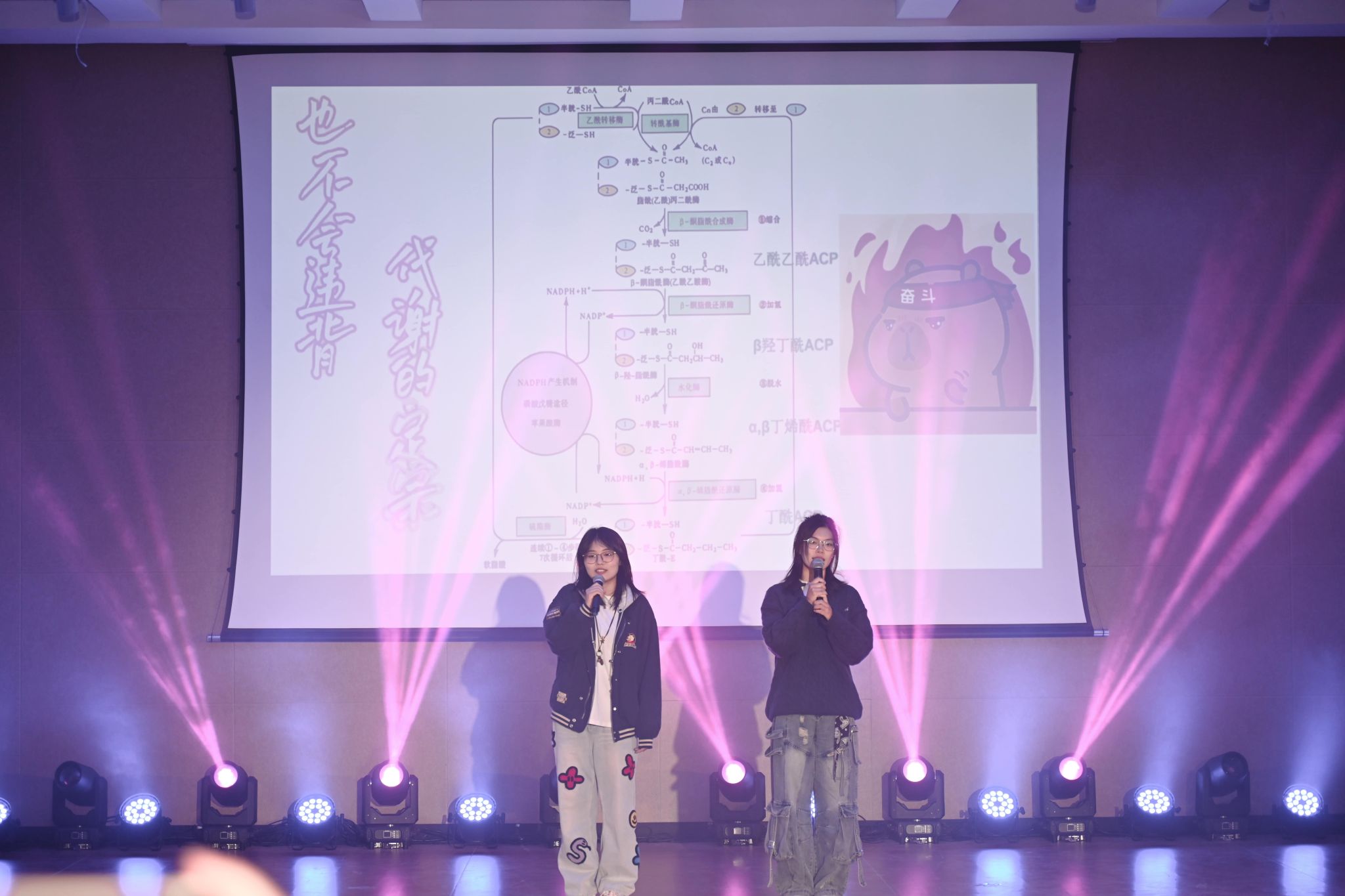 晚会在JDC舞社活力四射的表演《Famous》中拉开帷幕,瞬间点燃全场气氛。整场晚会节目形式多样、内容丰富多彩,生动展现了海生学子多才多艺、朝气蓬勃的青春风貌。同学们自编自演的节目《下课十分钟》《离考试结束还有十五分钟》《白雪公主与七个大高个》紧密贴近学习生活,充满创意与温情。改编小品《万松书院》《甄嬛传之谁动了我的奖学金》将经典剧情融入校园场景,以幽默方式展现大学生活;歌曲《脂灯笼》巧妙融合专业知识和艺术表达,生动有趣;防诈骗情景剧《“诈”裂青春,“聪”明前行》结合现实案例,提升同学们的网络安全意识;从《极昼也有梦》《日不落》的明媚炽热,到《卡拉OK》《Yes,werock》《风与城与达芬奇的混沌共振》的自由欢腾,再到《未发送的心动漫游》《我的未来式》《舞动青春》的昂扬奔赴,活力四射的同学们用整齐划一的动作展现出青春的激扬,与台下的观众共赴逐梦之约。师生合作环节更是温情满满,两首经典粤语歌曲《真的爱你》联唱引起全场共鸣,教师代表献唱的海生版《有点甜》,诠释了校园生活的纯粹与美好,寄托了对同学们的深深期许。晚会还穿插了互动环节,“猜歌大比拼”吸引现场同学踊跃参与,欢声笑语不断。在温馨的寄语视频和幕后花絮播放后,朗诵《闪耀吧,青春的火光》和学生干部代表合唱《我乘着风飞过来》,为整场晚会画上圆满句号。