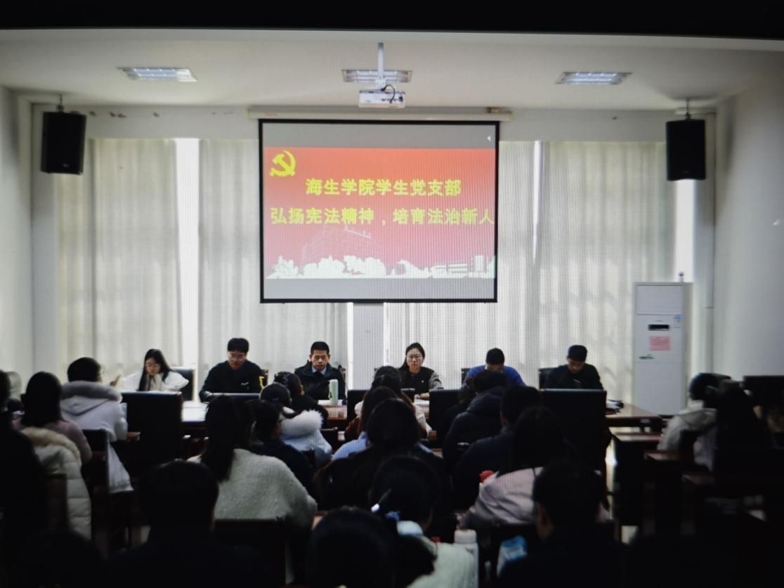 近日,海生学院联合“海梦启航”一站式社区以“学习宣传贯彻习近平法治思想,推动宪法深入人心”为主题,开展了2025年“宪法宣传周”系列活动。通过宪法诵读、党员领学、观看专题视频、法治培训、表演情景剧等多种形式,将法治宣传教育融入立德树人全过程,为建设法治校园筑牢根基。