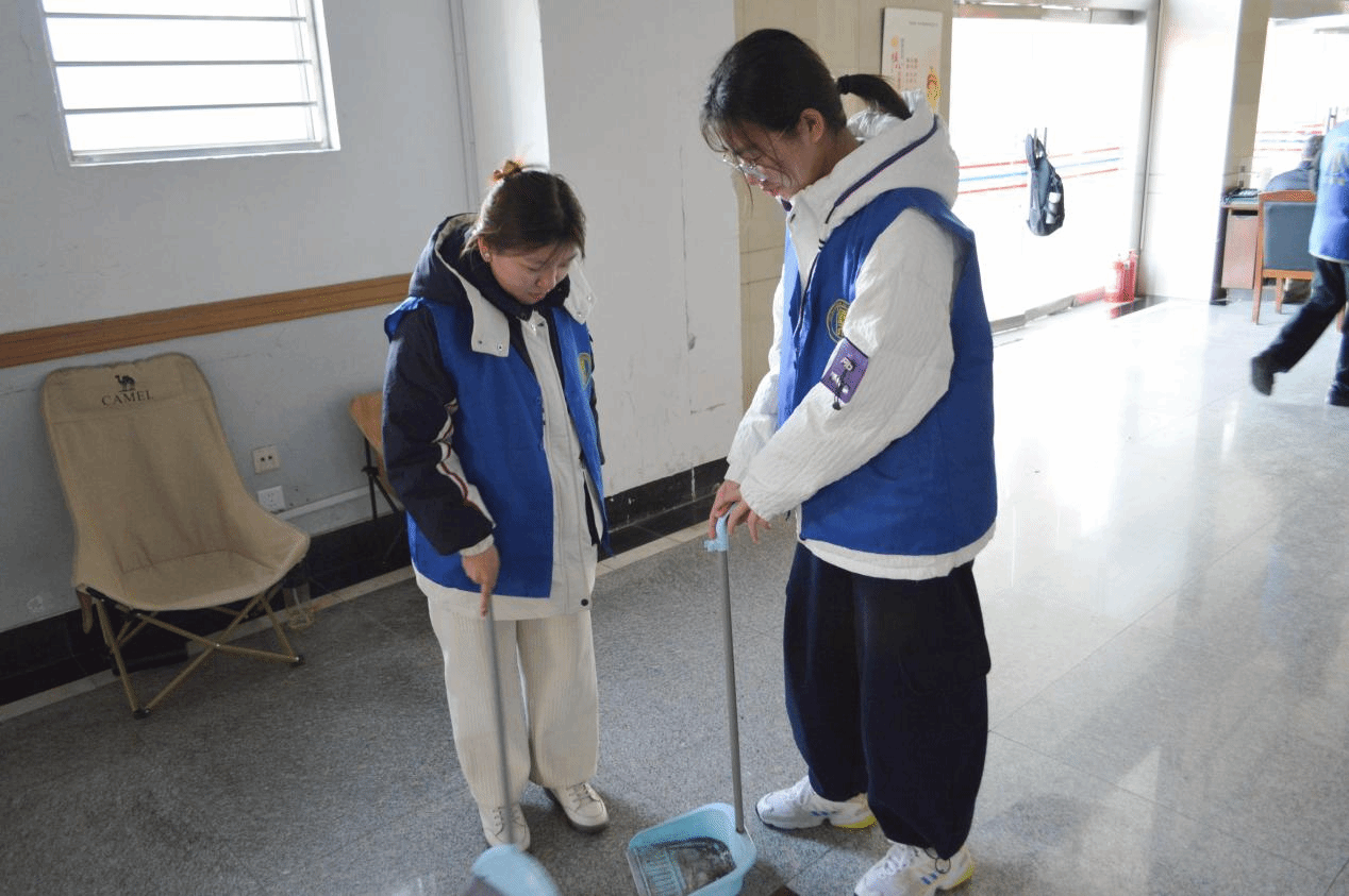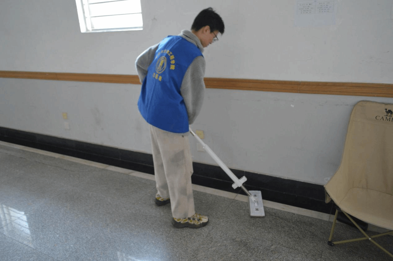 志愿者们迅速投入到各项工作中,有的拿起清扫工具,对楼道进行细致打扫,即便是本就不算脏乱的地面,也清理出不少碎屑与杂物;有的专注擦拭书架、座椅、窗户等公共设施,不放过任何卫生死角;还有的忙着整理散落的书籍,严格按照分类标准将图书归位,让书架恢复整齐有序,同时细致清扫地面灰尘,清除角落堆积的杂物与垃圾。