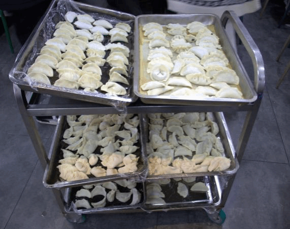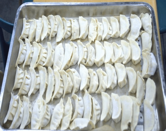 面皮、肉馅…随着原料的一一摆出,大家迫不及待的大展身手,有的同学翻转饺子皮、蘸水、填馅、裹边,不一会,一个标志的饺子便呈现在手中,有的同学则灵光乍现,大胆发挥,包出太阳、包子、春卷等五花八门的饺子,更有甚者偷偷换馅。