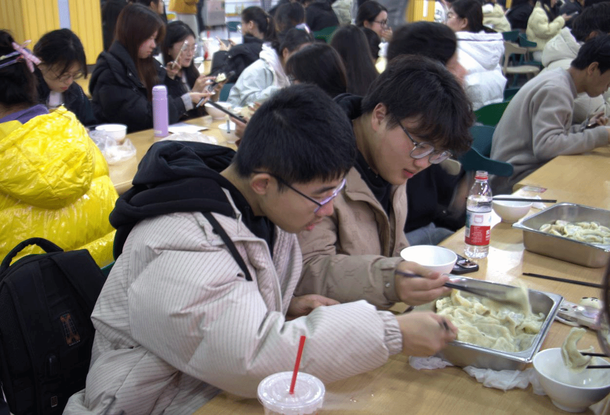 “以前在家都是吃现成的饺子,不知道包饺子还有这么多门道。今天亲手参与后才发现,每一个饺子里都藏着烟火气和人情味。学院组织这样的活动,不仅让我们缓解了学习压力,还传承了中华优秀传统文化,真的特别有意义。”B生物252杨兴童激动地说。B食品231王晨阳笑说:“看着大家吃得津津有味,脸上洋溢着幸福的笑容,我觉得挺开心的。冬至包饺子,包的是团圆,吃的是温情。希望以后学院能多组织这样的活动,让我们在集体生活中收获更多温暖和快乐。”