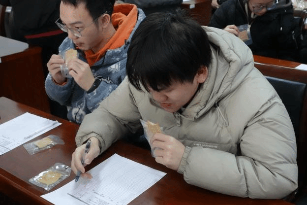 活动现场共设置了麻酱味、盐城海味等十余种风味豆干,品类丰富、各具特色,为学生提供了多元化的品鉴样本。45名同学分成两组,对各种风味豆干进行一边品尝,一边填写真切的个人感受。
