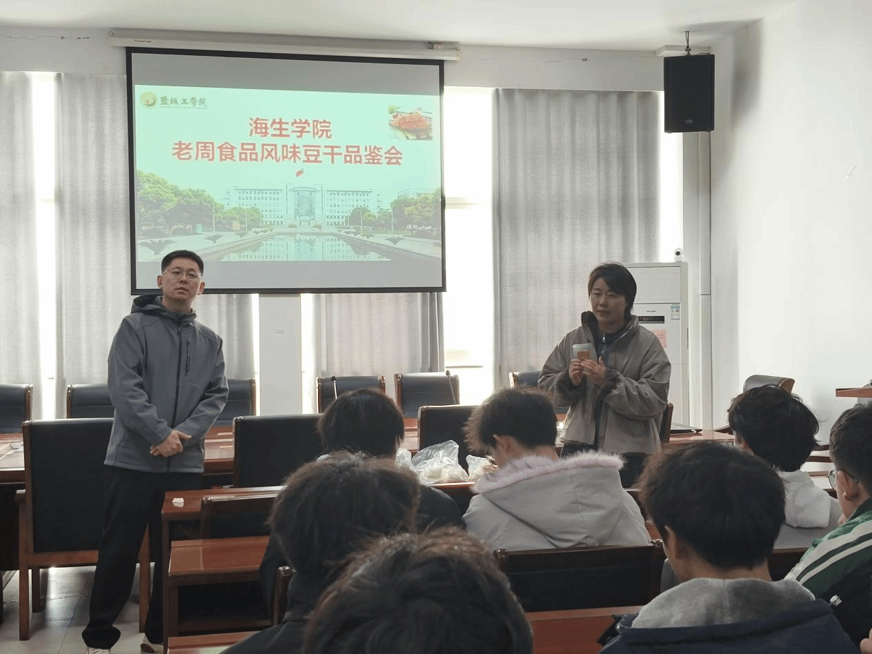 为提高学生食品品鉴能力,丰富校园生活,12月22日,海生学院在学院大会议室举办风味豆干品鉴活动。党总支书记高留才、党政办公室主任朱庆芳、新生辅导员许璐出席,25级食品专业学生和部分学生干部代表参与,活动特邀老周食品公司销售经理储彬、企划经理徐海燕等参加。