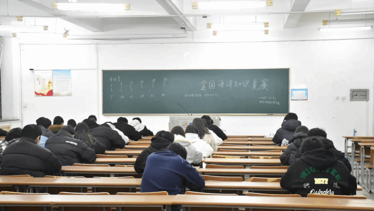 为深入贯彻海洋强国战略,夯实学子海洋知识储备,选拔优秀选手备战第15届全国海洋知识竞赛,11月23日晚7时,海生学院在图书馆教室组织了校内选拔初赛,初赛以手机网上答题形式,吸引了来自学院各专业的80名同学参加。