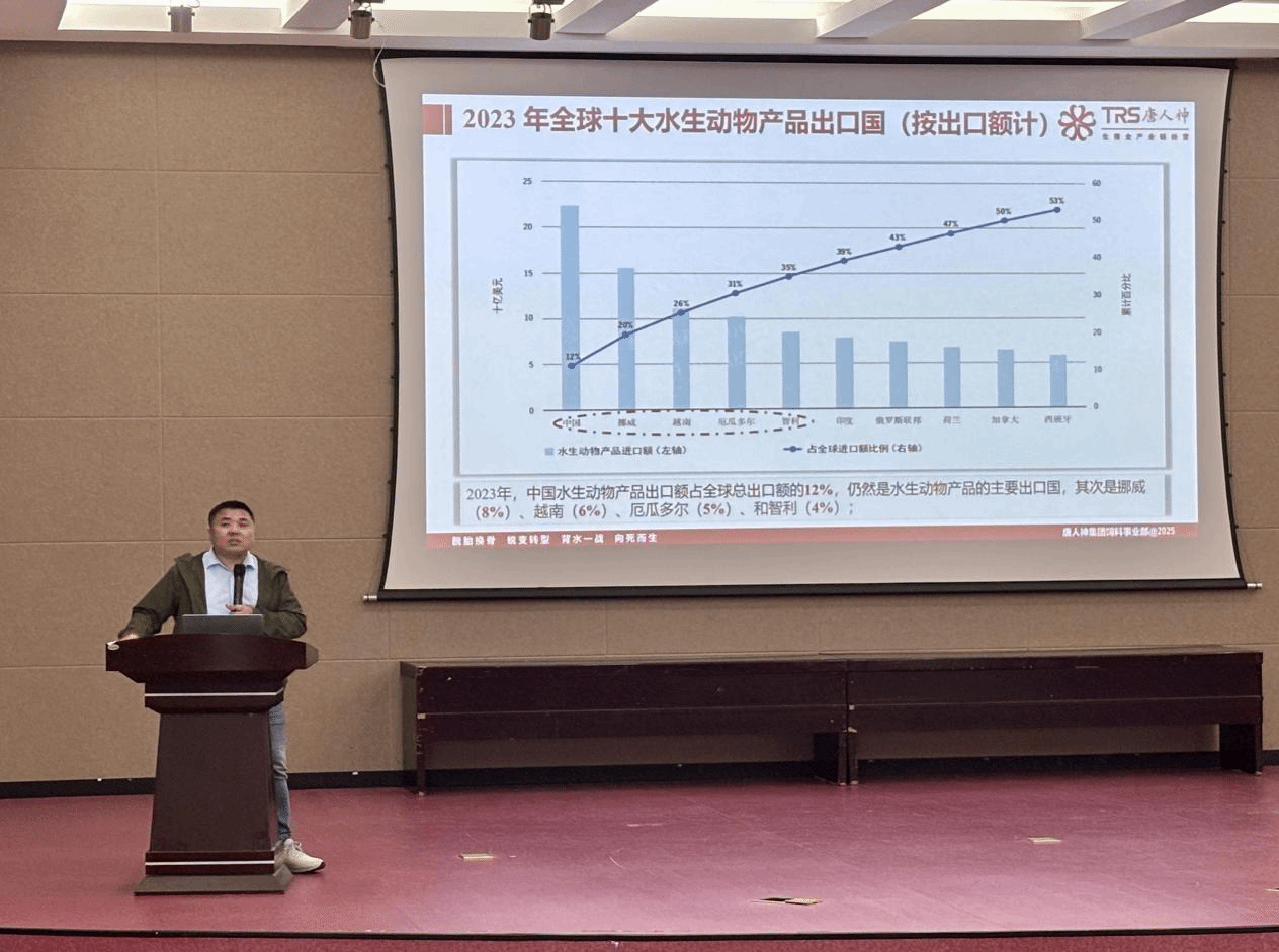 廖英杰总裁表示,当前水产饲料行业呈现两大发展趋势:一是行业加速规模化、集约化发展,龙头企业主导产业升级,小型工厂逐步被淘汰;二是海外市场潜力凸显,依托“一带一路”,国内水产企业积极出海布局。越南、印尼、厄瓜多尔等国家投资前景广阔,我国先进养殖技术与成熟模式,助力中资企业快速开拓海外市场。