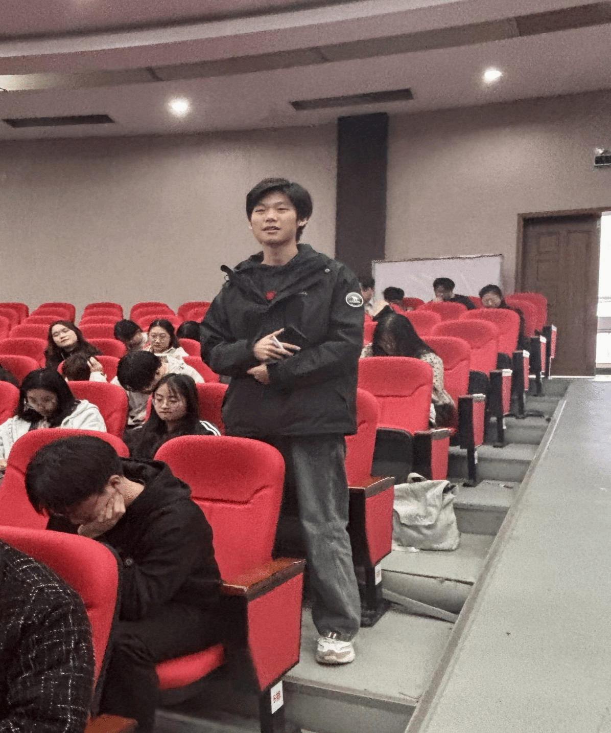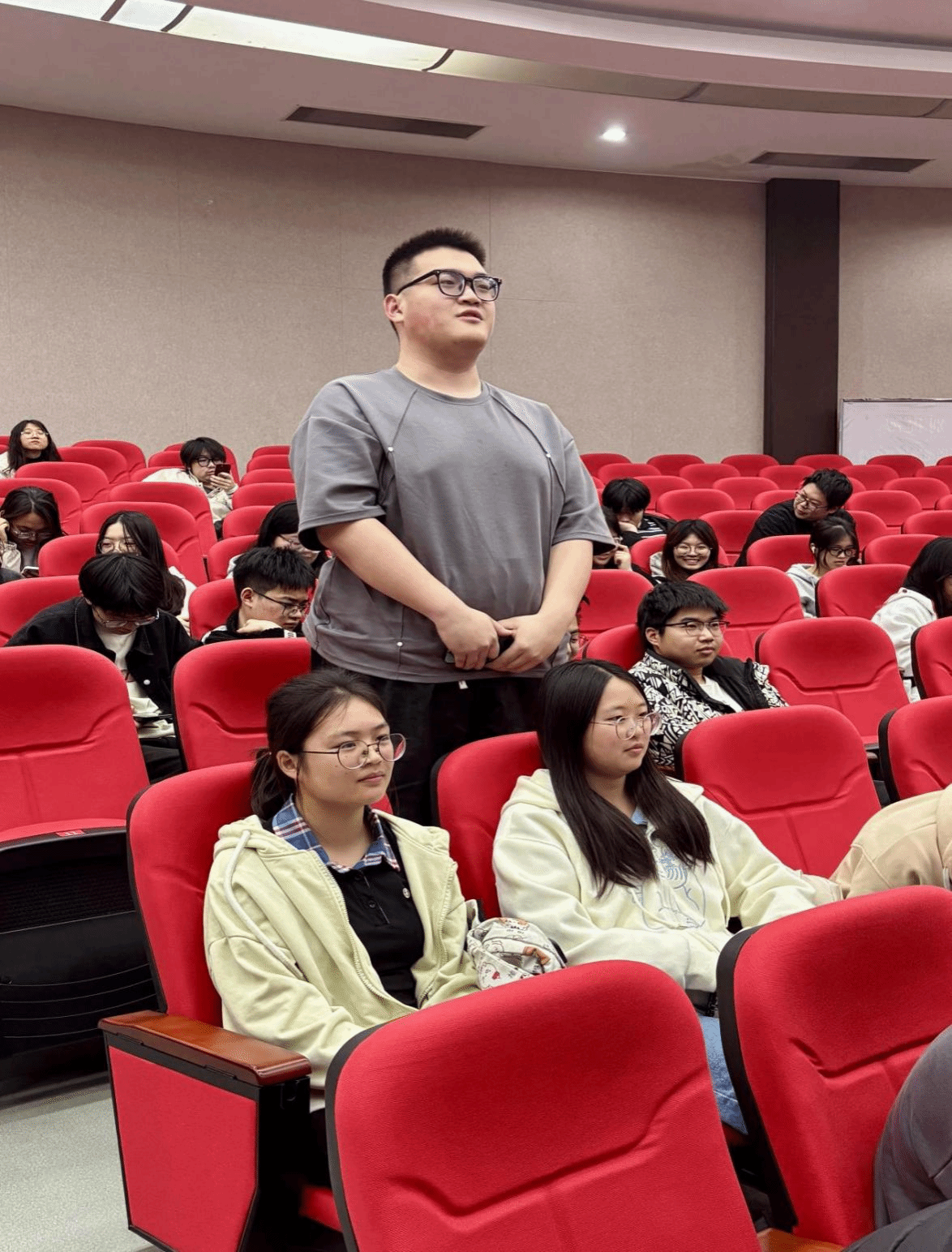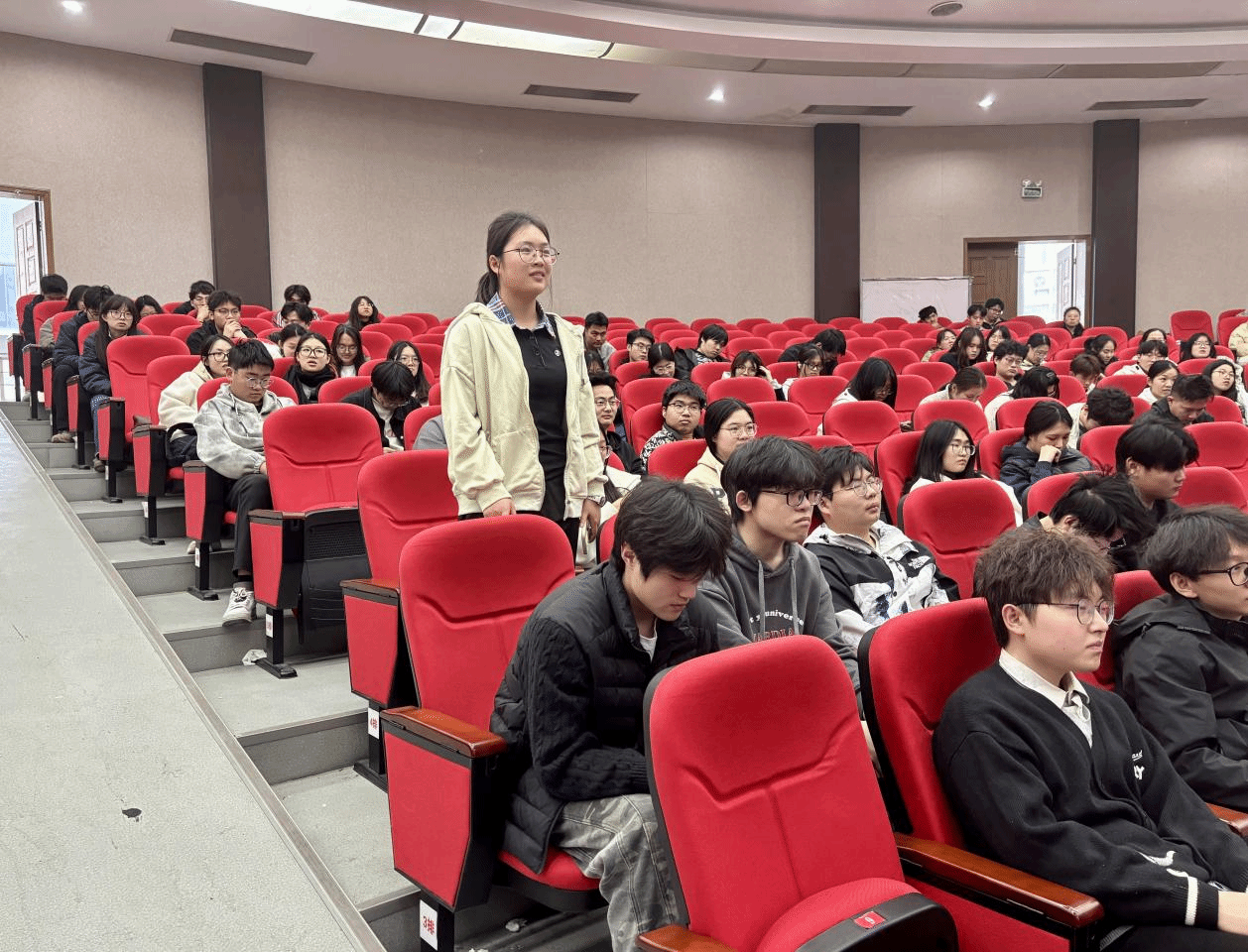 互动交流环节,现场同学们踊跃提问、积极交流,气氛热烈。针对B海洋241班学生夏锦浩关于海洋专业所学技能在实际应用前景问题。廖英杰表示:“海洋专业知识与技能在海洋资源开发、环境保护、工程建设、水产养殖等领域应用广泛,是当前蓝色经济发展中的重要支撑,专业前景十分广阔。”