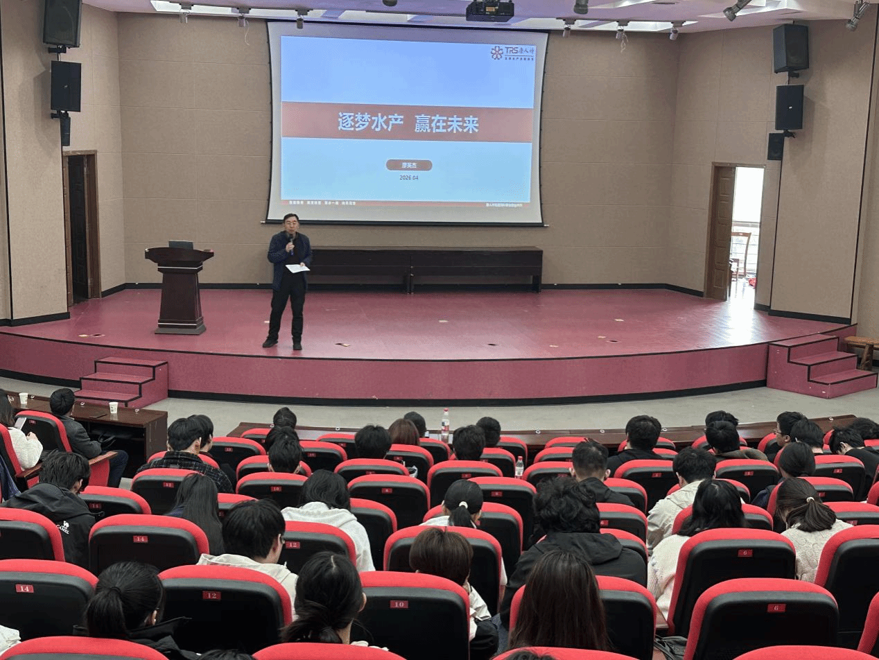 2026年4月14日下午4时,在五四报告厅,海生学院邀请到唐人神集团水产事业部总裁廖英杰为师生作产业发展和成人成才报告。学院党总支书记高留才主持,海生学院院长彭斌以及王爱民教授、杨文平副教授、张武肖博士、夏斯蕾博士及22、23和24级海洋专业系学生和研究生同学参加。