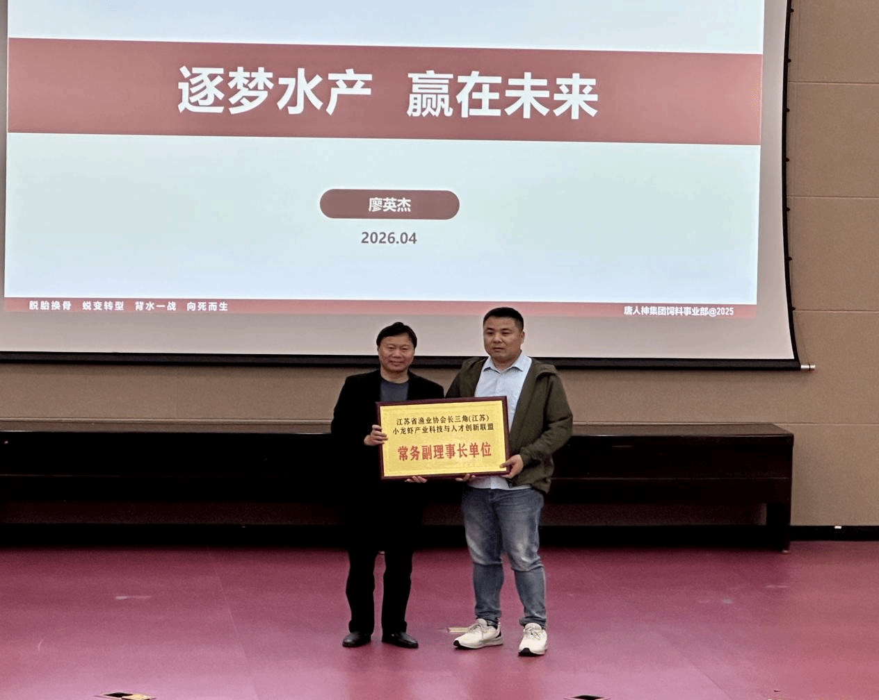 会前,院长彭斌为唐人神集团颁发了江苏省渔业协会长三角小龙虾产业科技与人才创新联盟常务副理事长单位牌匾,希望双方进一步深化产教融合、校企联动,助力产业高质量发展与专业人才培养。