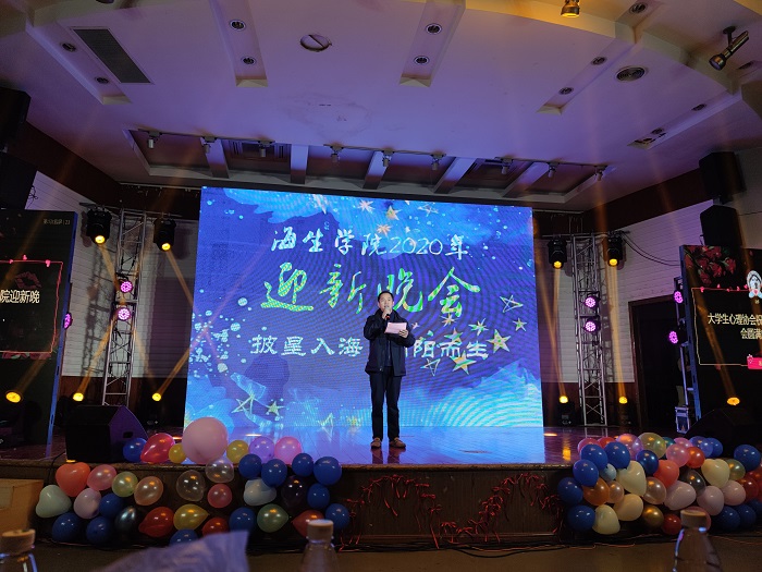 11月25日晚19:00,海洋与生物工程学院在北校区五四报告厅举办“披星入海 向阳而生”2020级迎新晚会。学院党总支副书记刘正华,副院长齐志涛,副院长刘飞出席,学工办主任毕蕾,院团委书记周桂楼,新生辅导员,全体2020级新生及兄弟学院的部分学生代表共300余人参加。