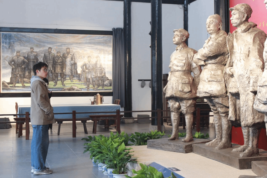 盐城泰山庙是新四军重建军部旧址,庙内设有新四军烈士纪念馆,这里陈列有近千名科团以上新四军烈士的遗象和生平史料,看着橱窗里的历史物件、宣传栏里的英勇事迹,大家仿佛回到了当年艰苦奋斗的岁月,犹如打开了革命的历史长廊,时间卷轴缓缓展开,将每个人带回了抗战时期,切身感受到了革命先烈在极端艰苦的环境中的浴血奋战和为中华民族的解放事业作出的巨大牺牲。海洋221班夏锦鹏同学表示,本次参观活动,让我们更直观、全面、深刻的认识了解了新四军发展、壮大的革命历史和感受了新四军用鲜血和生命铸就的铁军精神,每一个老物件,每一组图犹如一本生动的历史教材,深深打动着每一位同学的心。