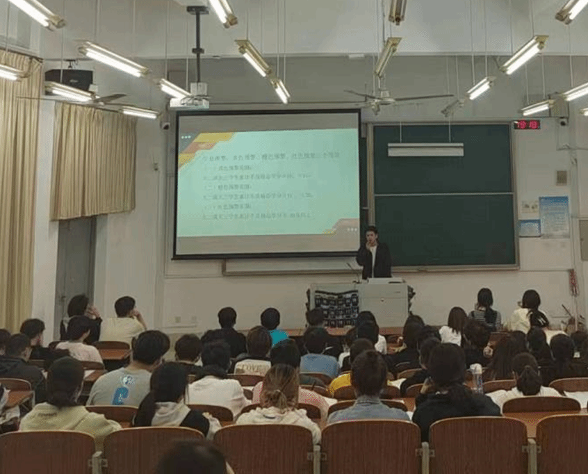 周大宇同学分享了自己的学习经验,在学习中要态度严谨认真,转变的学习思维方式,把握好课堂和周末空余时间。同时分享了学长学姐的考研经历,激励同学们为读研制定目标、早做规划。