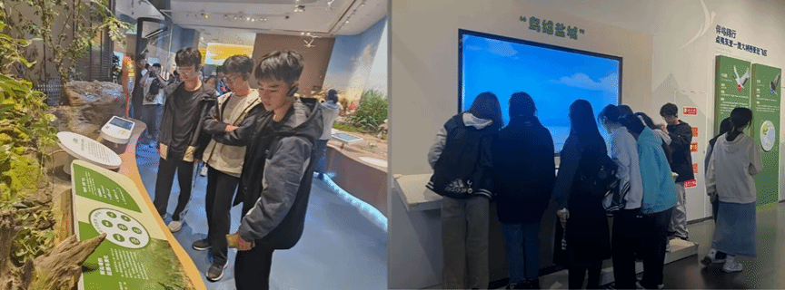 参观后同学们感慨万千,B生物232王耀霖说道:“新科技的运用让我身临其境,无论是候鸟还是中华鲟的迁徙,它们的每一次划鳍,每一次振翅,都是对生命的尊重。环保烈士徐秀娟的故事也让我十分感动,她的寻找与守护值得我们去铭记与深思。”