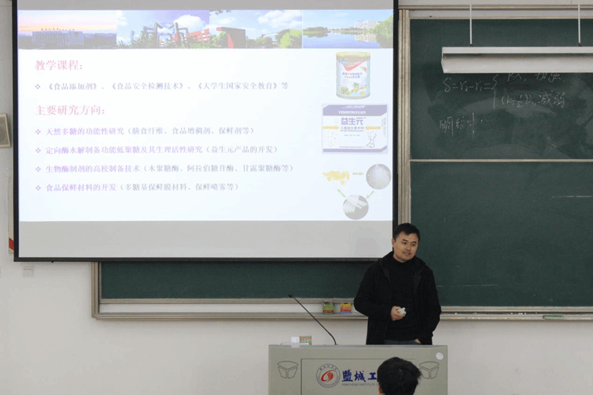 杨磊博士表示:“食品专业不仅仅是传统的食品研究,还有前沿的技术开发,知之愈明,则行之愈笃。”同学们唯有了解了自己的专业,才能在其道路上走的更稳,行得更远!此外,他还介绍了自己与郑清教授、葛小东老师的研究团队所主要涉及的科研方向及相关科研成果,并以PPT的形式向同学们进行了展示。“一分耕耘,一分收获,时代青年当志存高远,不负青春韶华!”他希望各位同学把握当下,抓住自己的人生目标,定当前途光明坦荡,亦不辜负美好的未来。