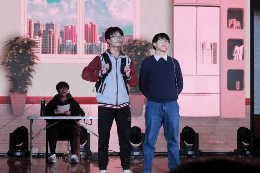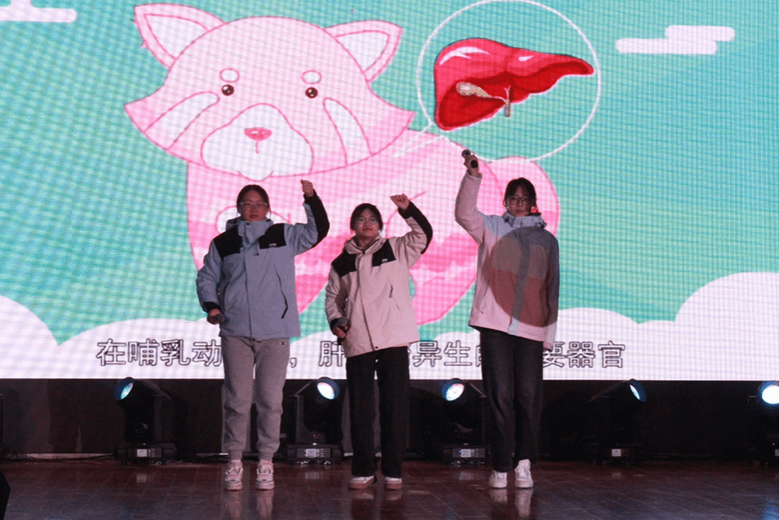 接下来,一场精彩纷呈的文艺表演正式开始!现场欢声笑语,歌舞升平,舞蹈、歌曲轮番上阵,小品、配音样样齐全,正可谓是百花齐放。其中,生化歌曲《糖不落》把繁琐的知识点串联成曲,活学活用,让我们领略到生化专业课的魅力;小品《作业活了》以其独特的创意和表演形式,赢得了观众们的阵阵掌声,赞颂了人民教师的奉献精神;舞蹈《少年态》,充满青春活力的舞蹈串烧展现出了中华少年的精神风貌;朗诵《青春》声声铿锵,字字真切,让我们看到了青年的蓬勃朝气与活力。师生深情合唱《海阔天空》,更是赢得了在场观众的阵阵掌声。