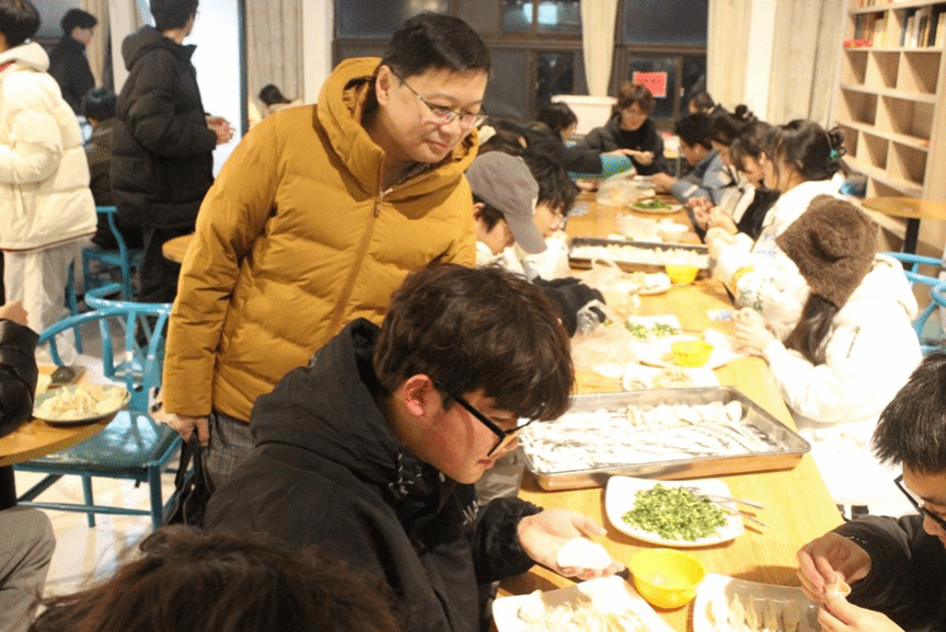 食品专业的博士张龙老师为学生介绍有关饺子的知识。在中国北方的许多地方,每年冬至日都有吃饺子的习俗。中国北方地区在这天都要吃饺子,因为饺子有“消寒”之意,至今民间还流传着“冬至不端饺子碗,冻掉耳朵没人管”的民谚。“记得冬至要吃饺子,以防冬天对你冻手冻脚哦!”