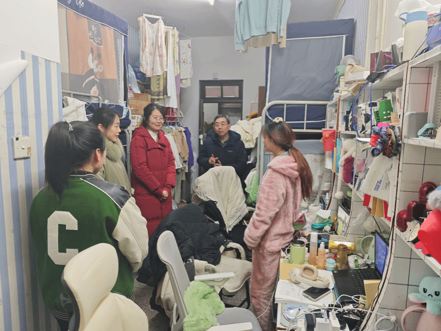 严守宿舍安全底线,共建平安寝室环境。老师们重点围绕学生宿舍卫生安全、有无大功率电器、排插使用、是否有烟头等方面开展检查。检查过程中,老师和同学们亲切交流,关心关爱每位同学的学习生活情况,嘱咐同学们要增强安全防范和卫生意识,合力营造更加安心的学习生活环境。