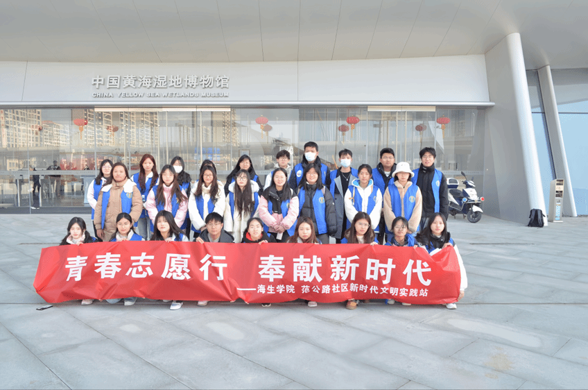 今年3月5日是第25个“中国青年志愿者服务日”。为深入学习宣传贯彻党的二十大精神和习近平总书记关于学雷锋志愿服务工作的重要指示精神,积极培育和践行社会主义核心价值观,弘扬“奉献、友爱、互助、进步”的志愿精神。3月2日上午,海生学院组织学生开展了“青春志愿行,奉献新时代”志愿服务活动—参观黄海湿地博物馆,共有30名青年志愿者参加此次活动。