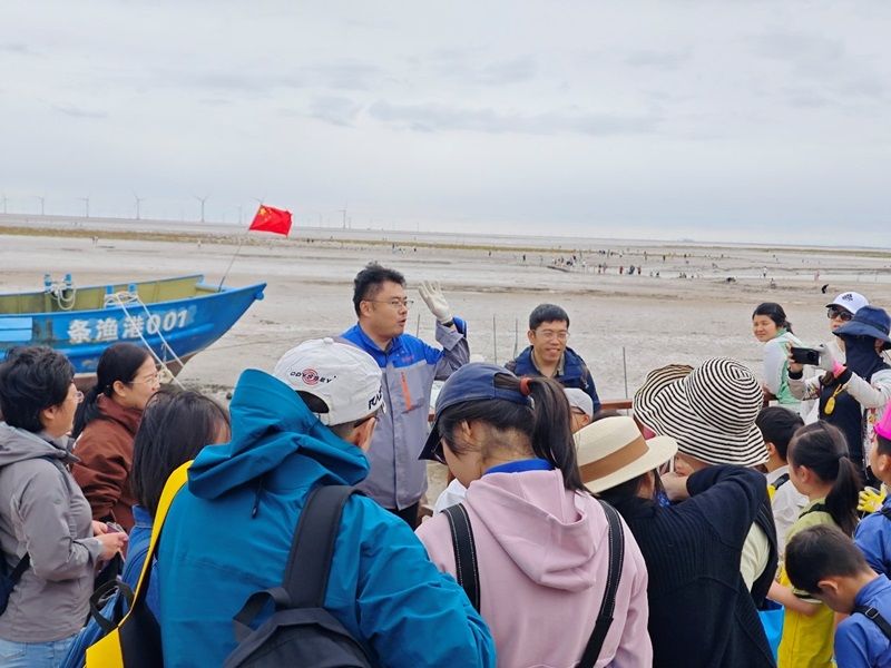 为普及湿地科学知识,增强湿地保护意识,10月4日,海洋与生物工程学院隋延鸣副教授带领生物与医药专业研究生冯婉君、魏雅楠,海洋专业本科生牛佳明在盐城东台条子泥开展“黄海绿韵·智慧启航”科普宣教活动。来自北京的30余位青少年和家长参加活动。