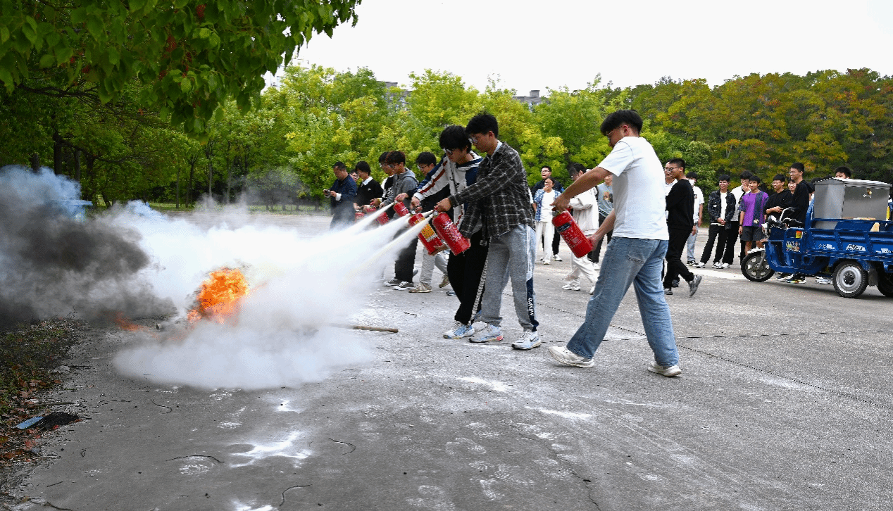 在互动环节,陆亮点燃火盆,让新生们亲自尝试使用灭火器进行灭火操作,这一实践环节极大地激发了同学们的学习热情,也让他们在实践中加深了对灭火器使用方法的掌握。紧接着,通过点燃烟雾弹模拟火灾烟雾,在老师们的引导下,新生们迅速而有序地撤离现场,体验了火灾逃生时的紧张与冷静应对。