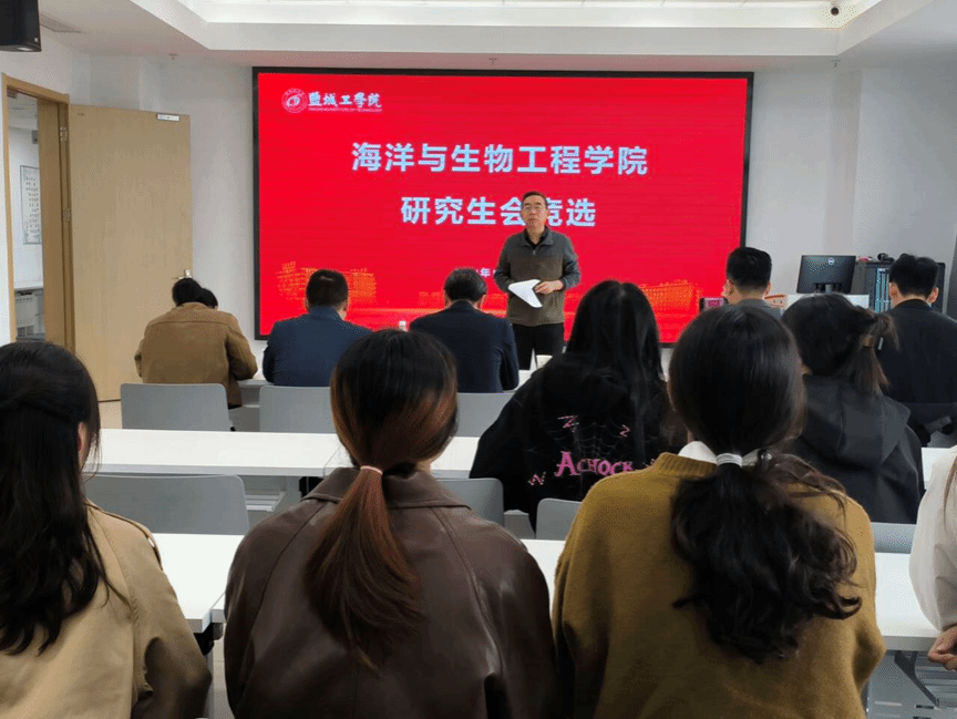 10月25日,海生学院在盐龙湖先进研究院举行了院研究生会学生干部竞选大会,学院党总支书记高留才,院长彭斌,副院长齐志涛,研究生秘书吕永梅,研究生辅导员王威力、霍福松出席大会并担任评委。