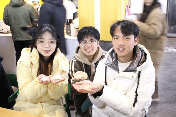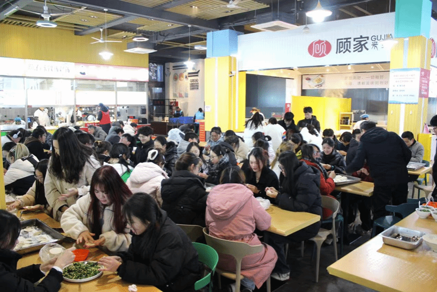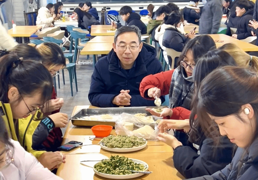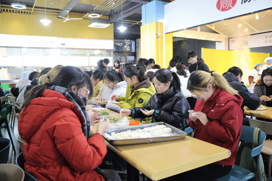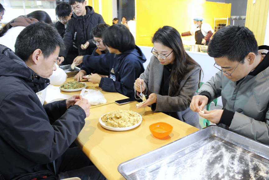在活动现场,我们还看到了许多第一次包水饺的同学。他们虽然手法生疏,但态度认真,每一个饺子都倾注了他们的心血和热情。在老师和同学们的指导下,他们逐渐掌握了包饺子的技巧,最终包出了形状各异、美味可口的饺子。从最初的笨拙到后来的熟练,每一个进步都让人欣喜!除了包饺子的乐趣,活动现场还充满了欢声笑语。师生们一边包饺子,一边交流着彼此的生活和学习心得。每个人的脸上都洋溢着开心的笑容。