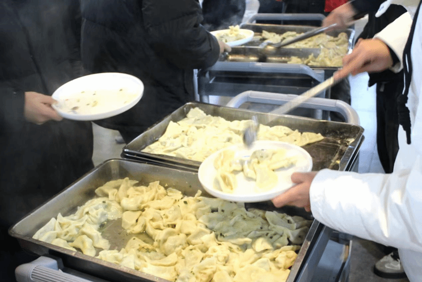 “叮!饺子出炉好幸福!”随着一锅锅热气腾腾的饺子出锅,整个食堂都弥漫着诱人的香味。大家围坐在一起,品尝着自己亲手包的饺子,感受着冬至的温暖和家的味道。那一刻,所有的疲惫和烦恼都烟消云散,只剩下满满的幸福和满足。