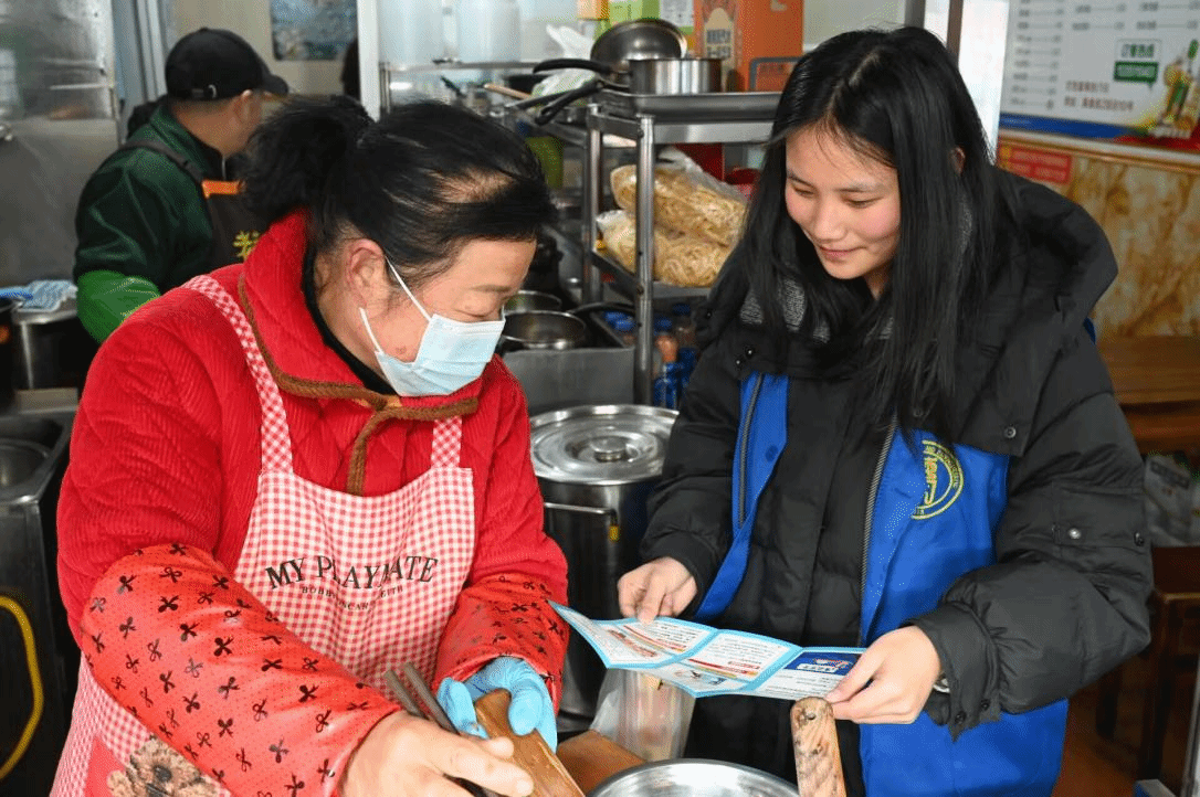 一声令下,同学们迅速融入美食街的烟火喧嚣之中。从最开始的羞怯寡言到熟练后的口若悬河,他们对介绍食品安全这件事越发得心应手,在他们生动的讲解下,原本枯燥的食品安全知识变得饶有趣味。值得一提的是,一位对食品安全格外上心的摊主竟主动向志愿者招手,满心欢喜地邀请他传授更多专业知识,这双向奔赴的一幕,成为美食街上别样的温暖风景。