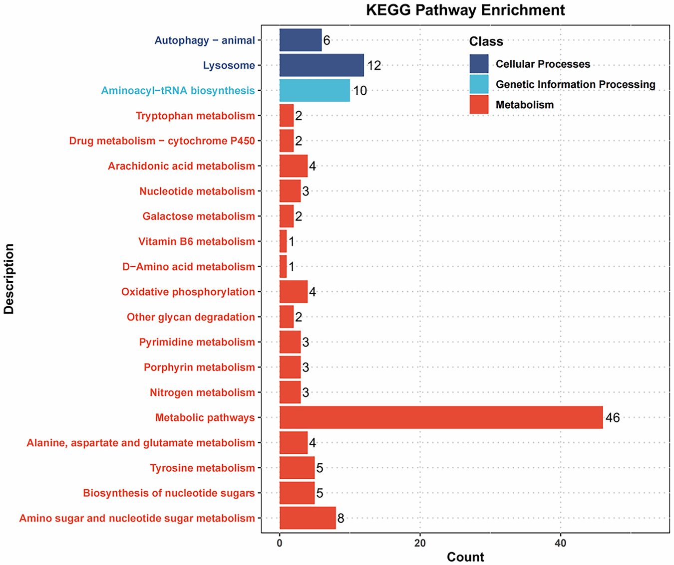 研究团队运用转录组测序技术,对青壳和白壳梨形环棱螺外套膜组织进行深入分析,找出了423个差异表达基因,其中224个基因在白壳螺蛳中显著上调。经KEGG分析发现,白壳螺蛳的形成机制与酪氨酸代谢、色氨酸代谢、花生四烯酸代谢、Notch信号通路以及卟啉代谢密切相关。