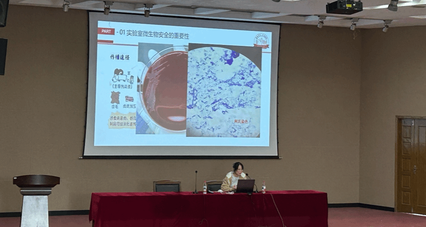 在微生物安全培训环节,康晶晶医生结合大学实验室安全现状,以“严守安全底线,共筑实验防线”为切入点,深刻阐述了实验室微生物安全的重要性。她指出,大学实验室存在较高安全隐患,实验操作中直接接触或形成气溶胶的环节都潜藏风险,容不得丝毫疏忽大意。