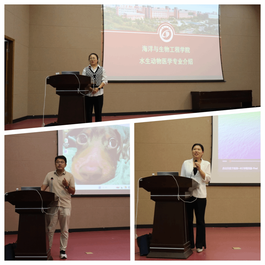 海洋专业的教育活动由教授乔帼,系主任隋延鸣、副主任聂庆主讲。乔帼教授围绕水生动物医学专业展开解读,指出该专业设立既是满足水产行业疫病防治的迫切需求,也是提升水产职业兽医师水平的关键,更是学校顺应江苏沿海大开发战略的举措。她介绍了专业在实践平台、学科融合、社会服务等方面的特色,说明新生可通过实验基地、国际合作、基层服务等途径学以致用。