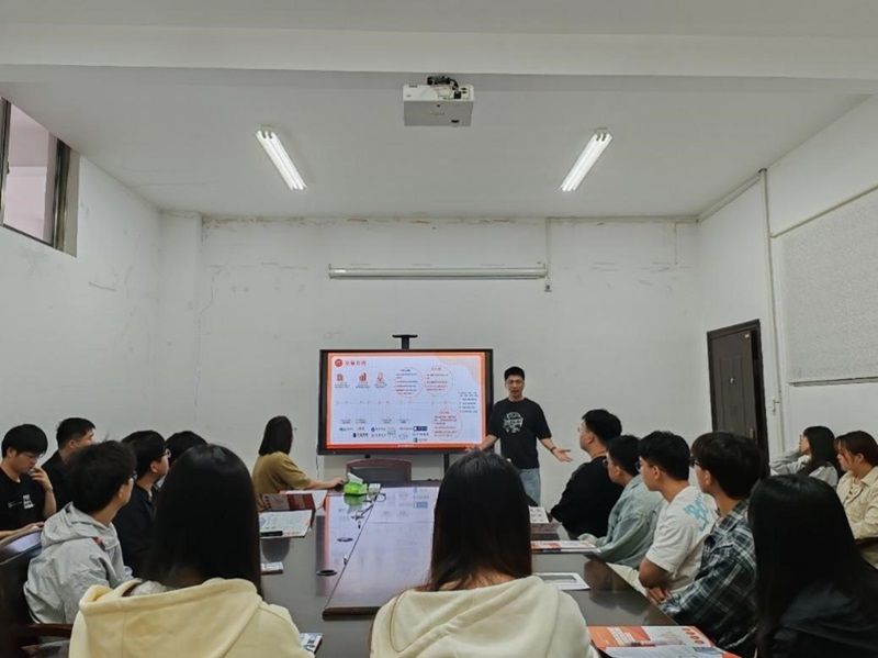 宣讲会上,企业林经理就企业发展历程、企业文化、人才管理和招聘需求等方面进行详细讲解,他根据自身经历向同学们展示选择的多元化,为同学们分析市场环境,讲解职业规划,为同学们在就业选择方面提供了宝贵的意见。他还分享了公司的一条理念:“如果在普米斯工作的人才遇到了更好的发展平台,我们是很为你们高兴的,并且愿意提供帮助。”